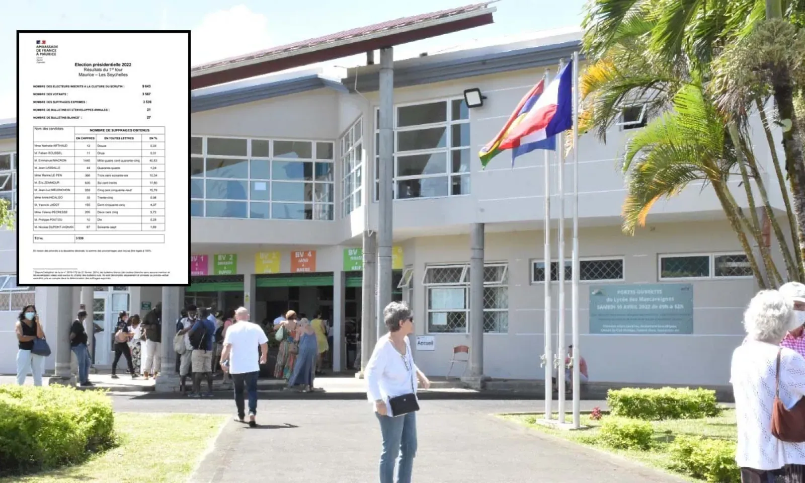 À titre de comparaison, pour l’ensemble du territoire français, Éric Zémmour est arrivé quatrième avec 7,07% des voix. À Maurice, il a obtenu 17,80%. Jean-Luc Mélenchon, qui a recueilli 21,95% des voix pour l’ensemble de la République française, est nettement moins populaire à Maurice où il a recueilli 15,79% des votes exprimés.