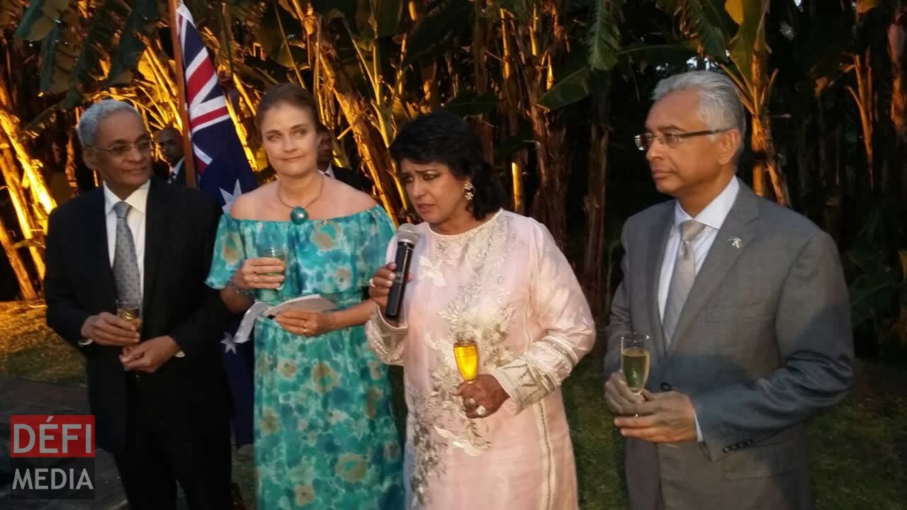 Parmi les invités de Susan Coles, ambassadrice d’Australie à Maurice, on pouvait retrouver, outre le Premier ministre, la présidente de la République Ameenah Gurib-Fakim, ainsi que le ministre mentor et de la Défense, sir Anerood Jugnauth.