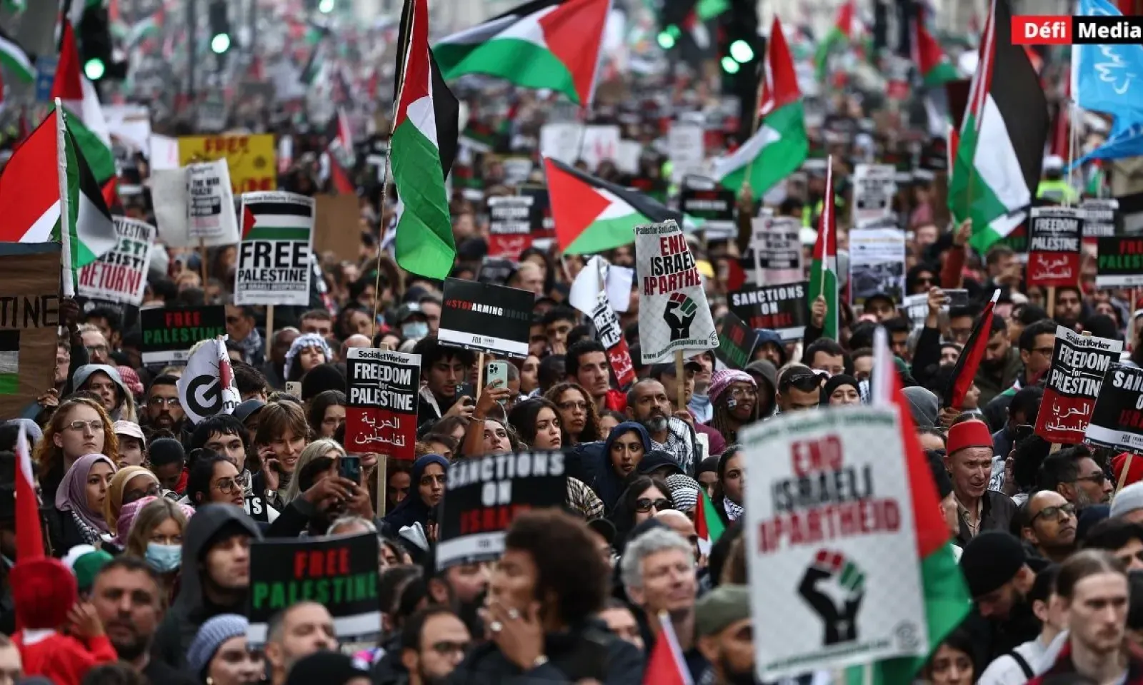 Pour le deuxième week-end consécutif, des milliers de personnes ont participé à une manifestation pro-palestinienne à Londres. Selon les estimations de la Metropolitan Police de Londres, jusqu'à 100 000 personnes s'étaient jointes à la marche, qui devait se terminer par un rassemblement près de Downing Street, à partir de 14h00 (heure française). C'est ce que rapport la BBC sur son site Web ce samedi soir.