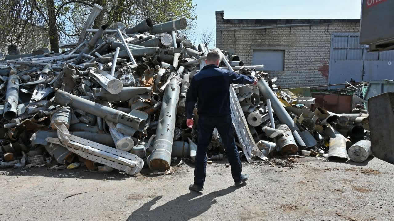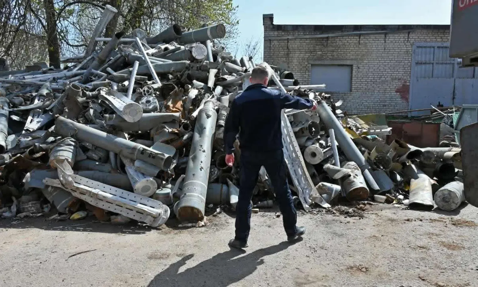 Non loin des palettes de matériel médical et de couches-culottes devant lesquelles ils étaient filmés étaient empilés des centaines d'obus et de roquettes de fabrication russe, données par des pays qui veulent généralement rester discrets sur leur participation à l'effort de guerre ukrainien.