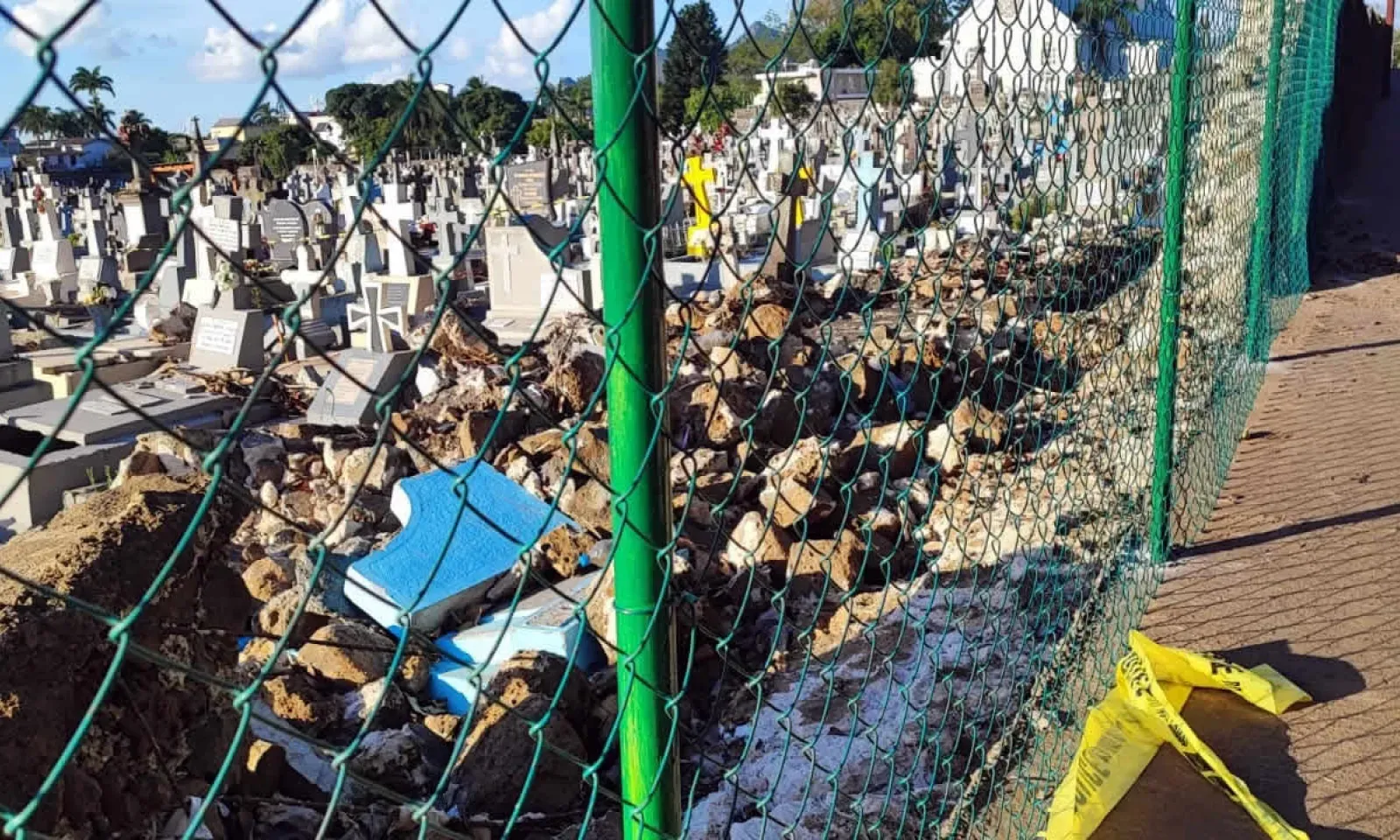 Il a été constaté que plus d’une quinzaine de maisons, à proximité du cimetière St-Jean, ont été impactées par les inondations survenues le lundi 15 janvier. Le mur de la « Broad Avenue », qui a cédé sous les fortes pluies du cyclone, a laissé des tombes, des crânes et des os dans les cours de certains habitants.