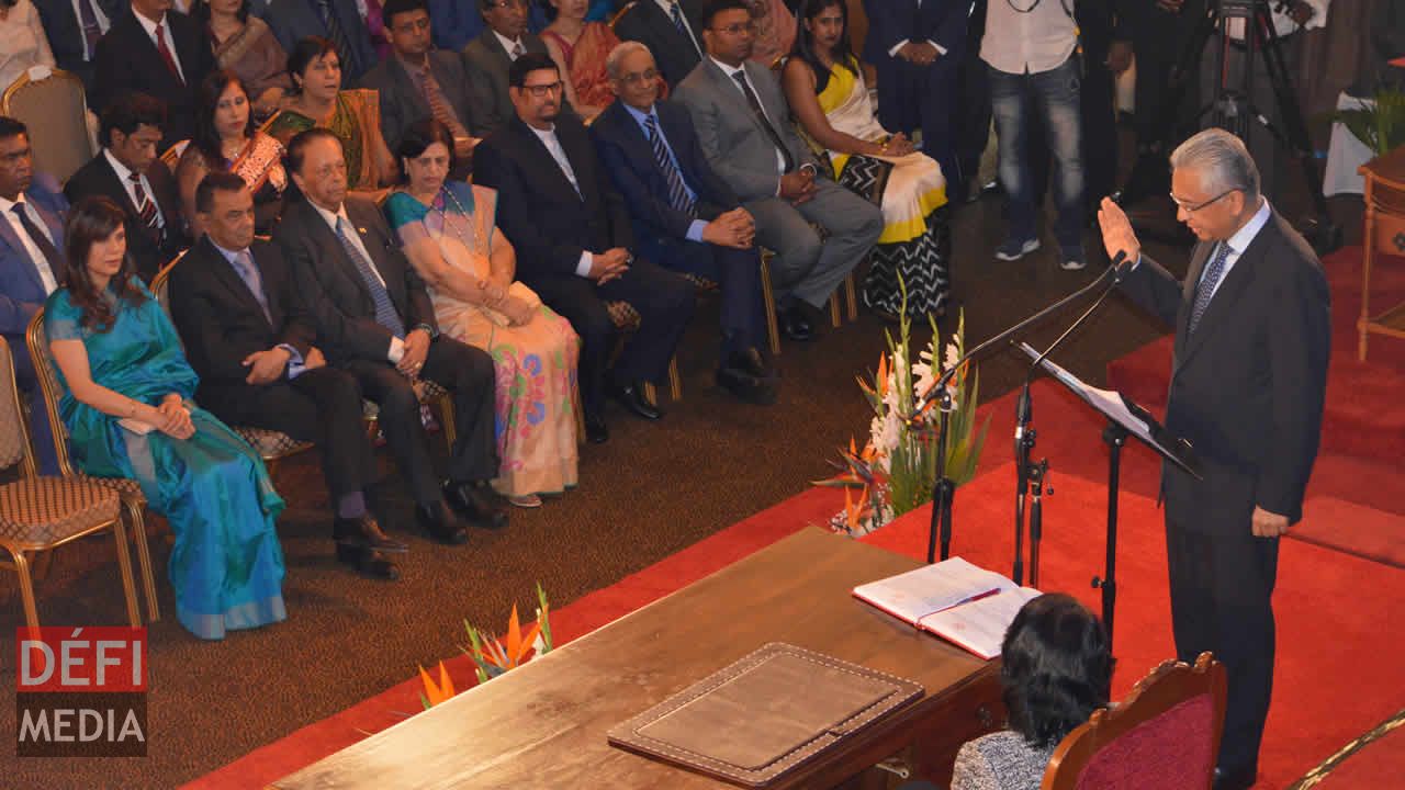La cérémonie de prestation de serment du nouveau Premier ministre Pravind Jugnauth et de ses ministres a eu lieu lundi après-midi 23 janvier au sir Harilal Vaghjee Hall à l’Hôtel du gouvernement à Port-Louis.