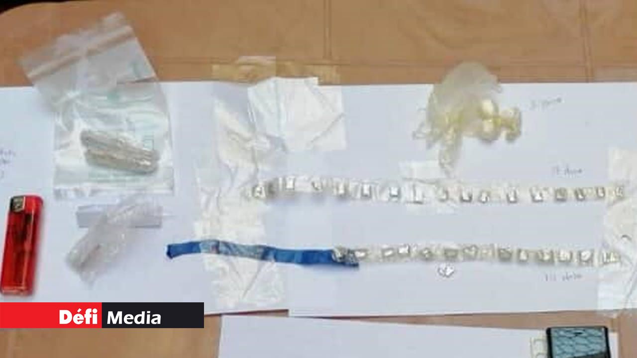 À l’arrivée des surveillants, une saisie conséquente a été effectuée : 13 doses de crystal methamphetamine, 18 doses d’héroïne et 25 morceaux de papier imbibés de drogue de synthèse, d’une valeur marchande estimée à Rs 108 100, ont été retrouvés dans des sacs en plastique.