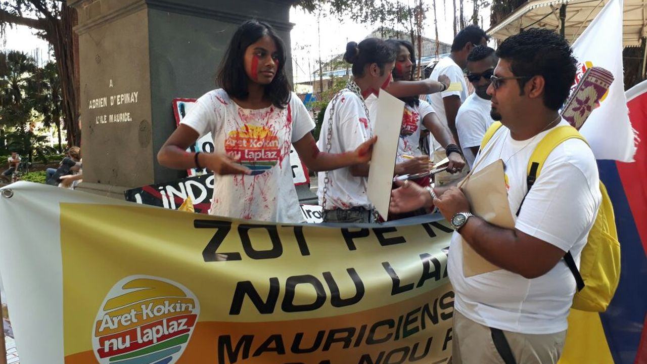 Les membres du collectif ‘Aret kokin nu laplaz’ ont tenu une manifestation dans les rues de la capitale ce samedi après-midi 9 décembre. Ils se sont rassemblés au Jardin de la Compagnie, Port-Louis, avant de se diriger vers la Place d’Armes où ils se sont de nouveau rassemblés devant l’Hotel du gouvernement.