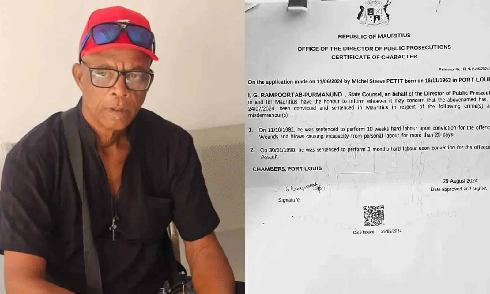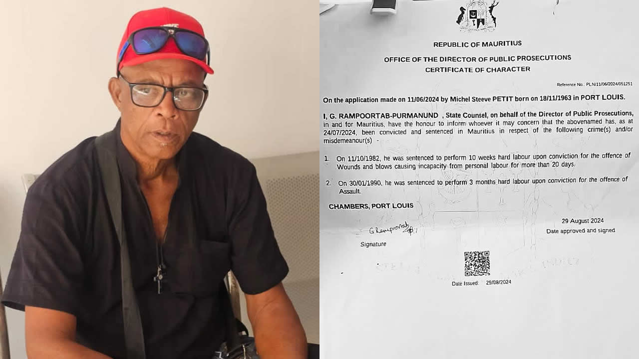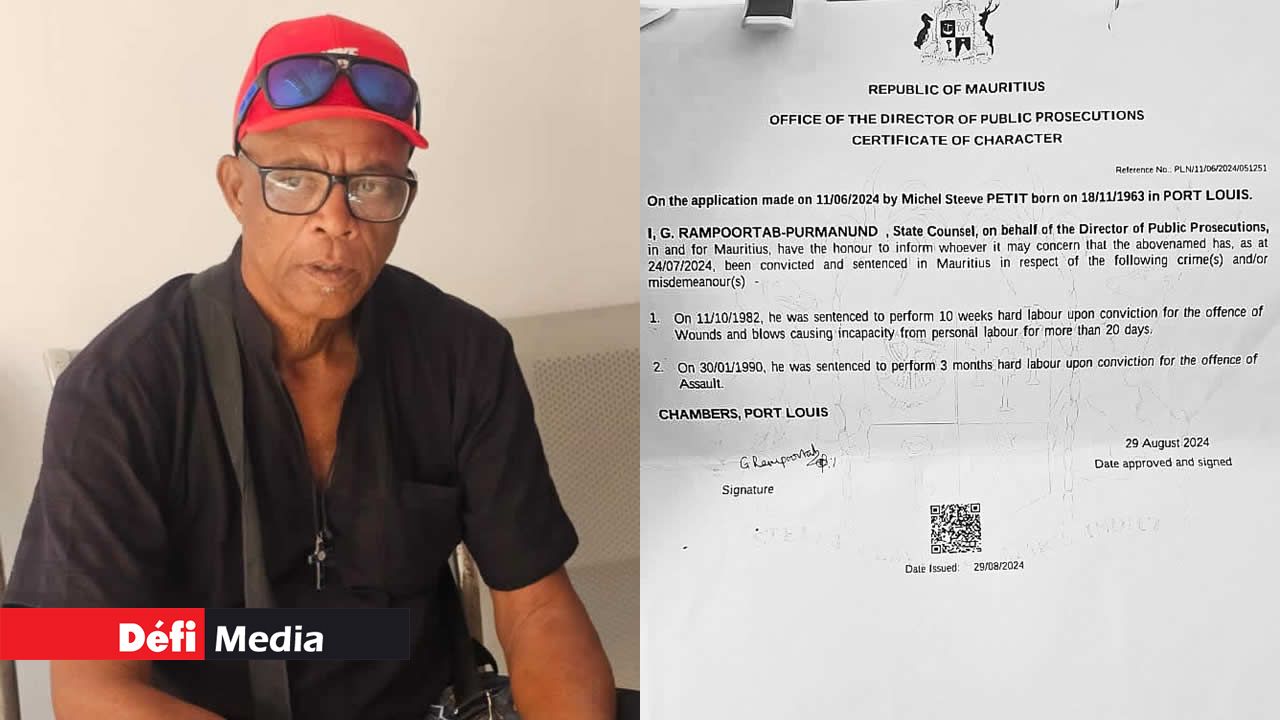 « Zot ti dir mwa amenn mo resi, zot kone mwa bien, mo travay zordi, zot mem finn donn mwa enn memo pou mo kapav travay anattandan. Mo finn peye Rs 1 500 pou sa », relate-t-il. Toutefois, le certificat prend du temps. Le confinement de 2020 paralyse tout. Quand enfin le précieux papier lui est remis, c’est un choc. Les deux condamnations de Michel pour ses erreurs de jeunesse ressurgissent. Le 11 octobre 1982 et le 30 janvier 1990, il avait été condamné à 10 semaines de travaux forcés pour coups et blessures et pour agression respectivement.