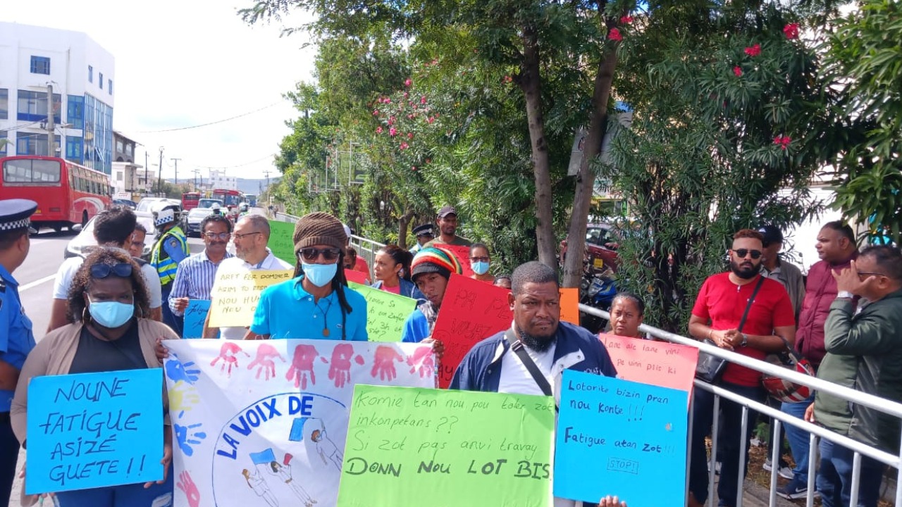 Une marche pacifique a eu lieu ce lundi dans la capitale, organisée par les habitants de la région de Madame Azor à Goodlands. La marche, qui avait pour but de dénoncer un problème constant de bus dans la région, a débuté aux Casernes centrales et s'est poursuivie jusqu'au bureau de la National Land Transport Authority (NLTA) à Cassis.