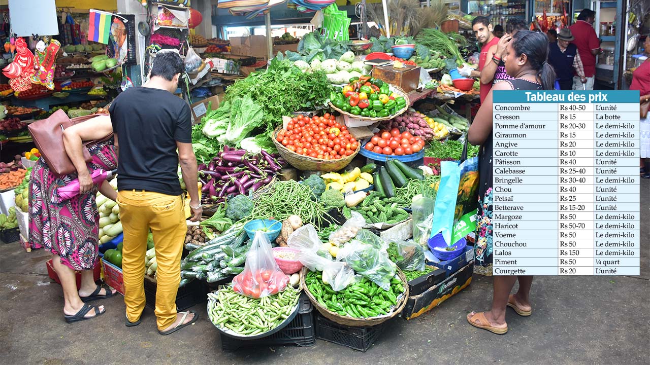 En l’espace d’une semaine, le haricot vert est passé de Rs 50 à 70 le demi-kilo. La pomme d’amour se trouvait dans la fourchette de Rs 20 à Rs 30 le demi-kilo alors que le concombre est passé de Rs 30 à Rs 50 l’unité. Le lalo est toujours à Rs 150 le demi-kilo.