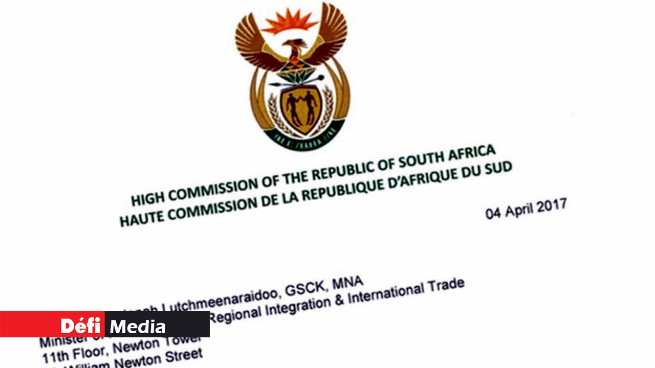 La correspondance établit clairement que le haut-commissariat sud-africain a rencontré les représentants de ces deux compagnies et demande en conséquence une réunion à ce sujet avec le ministre Vishnu Lutchmeenaraidoo pour trouver a mutual beneficial solution, afin d’éviter les procédures légales prévues en mai 2017.