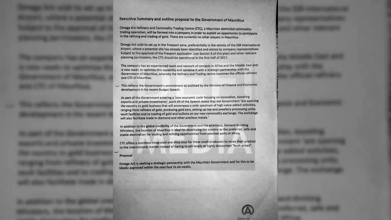 Le Défi Plus est en présence d’un document émanant du groupe britannique Omega Ark intitulé Proposal and Business Overview daté d'août 2016. Le Commodities Refinery and Trading Centre (CTC) voulait être nommé représentant officiel du gouvernement mauricien. Omega Ark voulait aussi s’installer au Rose Belle Business Park dans le cadre du nouveau Mauritius International Derivatives & Commodities Exchange (MINDEX).