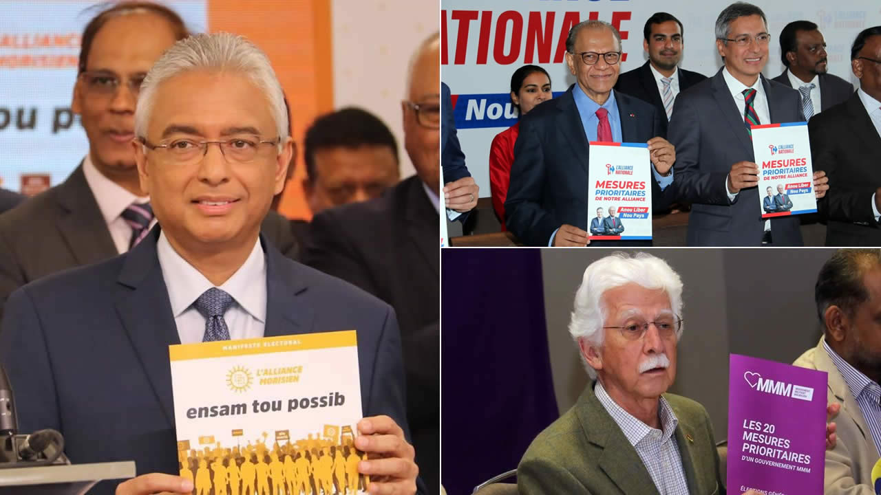 Comme lors de chaque élection générale, les partis politiques font les yeux doux aux électeurs à travers des promesses et des annonces, allant même jusqu’à faire de la surenchère. Les trois gros blocs ont annoncé leurs priorités en cas de victoire. L’Alliance Morisien (MSM-ML) a 15 grandes promesses. L’Alliance Nationale (PTr-PMSD) propose, elle, 21 mesures prioritaires. Alors que le MMM en a 20. Force est de constater qu’un grand nombre de ces mesures se ressemblent. Nous vous proposons un comparatif des priorités de ces trois adversaires dans cette joute électorale.