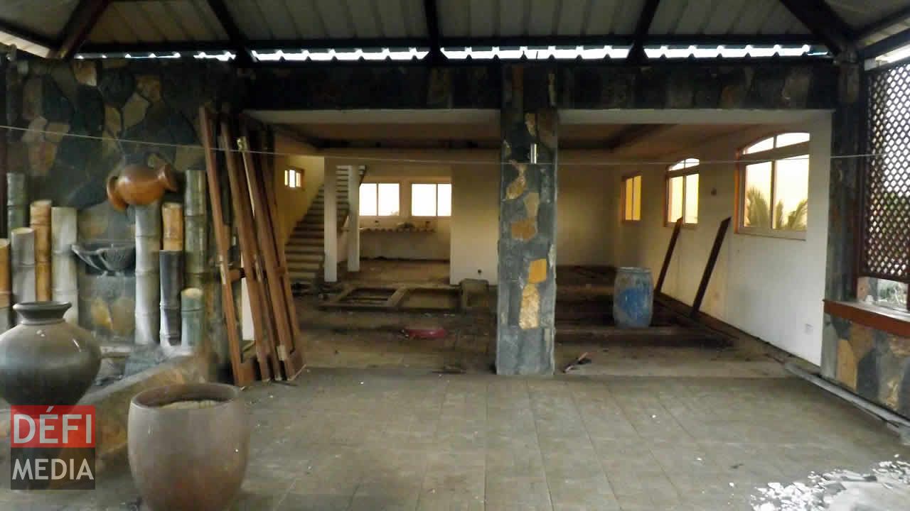 Les « ti jockeys » qui surveillaient autrefois les moindres mouvements suspects dans la ruelle ont disparu. Une poignée de jeunes, torse nu, se livrent à un match de foot sur la route. Notre présence les intrigue. Louis Roger Jean Jacques nous ouvre la porte. Une voiture japonaise est garée dans la cour. Elle remplace les somptueuses berlines allemandes de Gro Derek aujourd’hui conservées à la fourrière de la police. Au rez-de-chaussée, habitent le père Louis Roger Jean Jacques et son épouse. Le décor du salon est soigné. La salle est spacieuse, les peintures murales ont des couleurs qui égaillent l’atmosphère. L’ameublement est de dernier cri. Mais passé le salon, c’est autre chose : la cuisine a gardé sont style initial, c’est-à-dire une structure classique. Là, pas d’ameublement de cuisine moderne. Tout est dans la simplicité. À l’étage, c’était le quartier de Gro Derek et de son épouse. La belle pièce où il ne manquait de rien a été graduellement vidé de ses meubles. Seuls demeurent des portes et des meubles endommagés, recouverts de poussière. C’est désormais le chien de la famille qui profite de l’espace. D’ailleurs il faut faire attention aux excréments du chien qui jonchent le sol. Au niveau supérieur, on trouve la grande terrasse, avec une vue imprenable. D’un côté, le lagon de Pointe-aux-Sables, de l’autre, la Montagne-des-Signaux. Le troisième étage est un excellent poste d’observation, permettant de surveiller tout mouvement suspect autour de la forteresse. Autrefois, le maître des lieux, dit-on, donnait des fêtes sur la terrasse où champagne et boissons alcoolisées coulaient à flots, autour d’un bassin à poissons. Désormais, ce sont les pigeons qui profitent du décor. Le père ne sait plus où donner la tête : « Nou pe les li abandoné paski pa koné ki pou arive pli divan. »« Zot lizié sorti lor sa lakaz la »