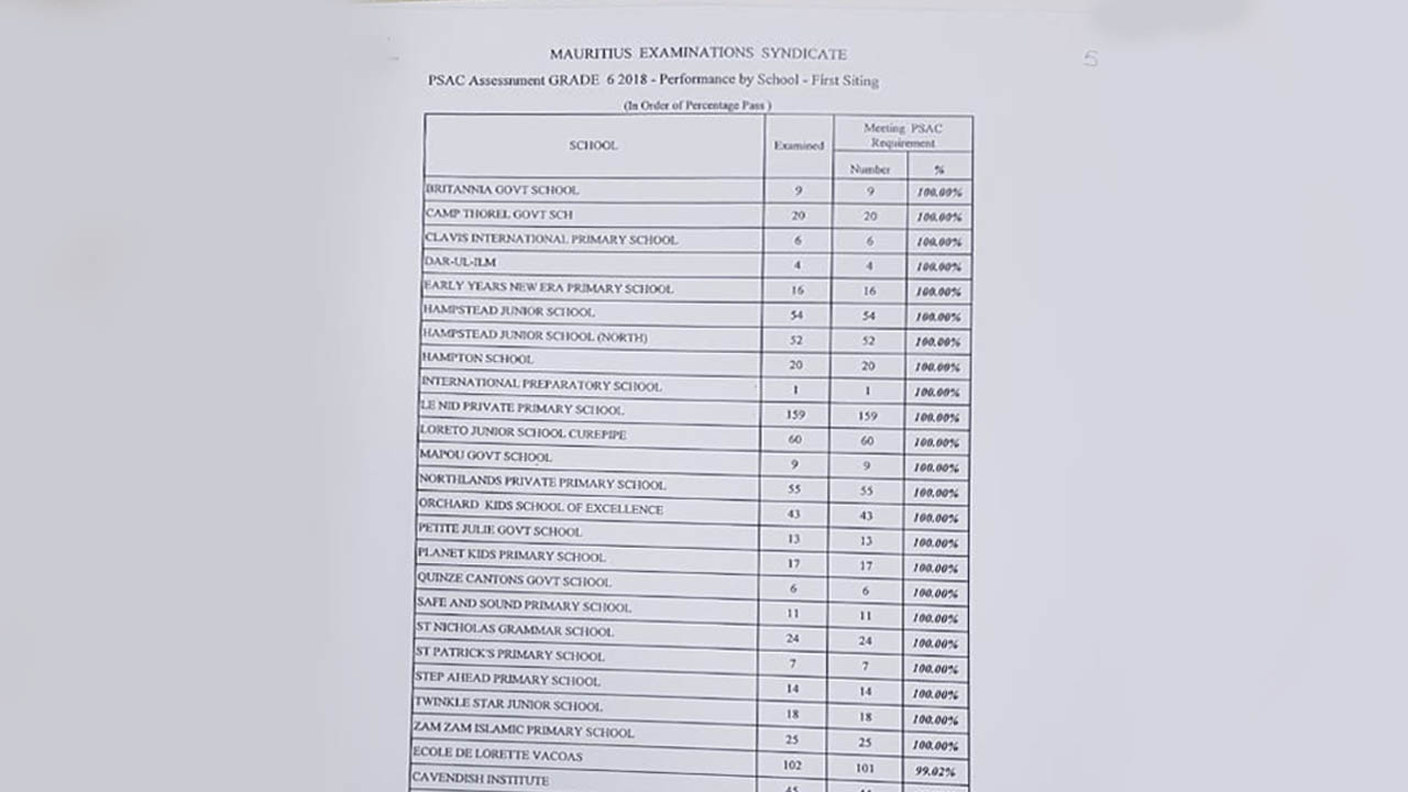 23 établissements, dont les Britannia Govt School, Camp-Thorel Govt School, Petite-Julie Govt School ou encore le Collège Lorette de Curepipe, affichent un taux de réussite de 100%. Un peu plus de 80% des candidats ont réussi dans les core subjects, soit 80,3% en Anglais et 80,4% en Mathématique. Le français, la matière la mieux travaillée, affiche un taux de réussite de 82,12%. Par ailleurs, 76,5% des candidats ont réussi en Histoire Géo et en Science et 77,9% en Kreol Morisien. Le taux de réussite pour les langues orientales varie entre 71 et 75%.