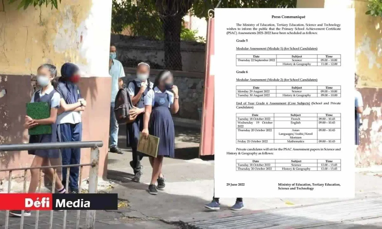 Les examens du Primary School Achievement Certificate se tiendront du 29 août au 20 octobre 2022. Le ministère de l’Éducation a rendu public le calendrier des examens ce mercredi 29 juin.