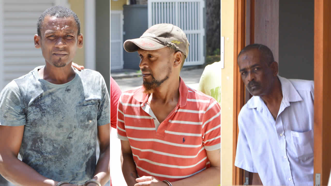 En moins d’une heure, grâce aux descriptions données par l’adolescente, les limiers de la Criminal Investigation Division (CID) de Quartier-Militaire ont interpellé trois suspects : Jean Sylvestre Marie, 36 ans, son frère Jean Sylvio Aldo Marie, 46 ans, ainsi que le caporal Retnon Chowrimootoo, du poste de l’hôpital ENT de Vacoas. Tous trois habitent L’Espérance, Quartier-Militaire.