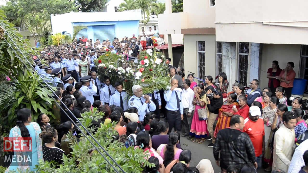 [[{"type":"media","view_mode":"media_large","fid":"18915","attributes":{"class":"media-image aligncenter size-full wp-image-32416","typeof":"foaf:Image","style":"","width":"1280","height":"720","alt":"Fun\u00e9railles du Constable Mungur et de son b\u00e9b\u00e9"}}]] À Tagore Road, Lallmatie, une foule composée de proches, d’amis, de voisins et de collègues se sont déplacés pour rendre un dernier hommage au constable Chetalsing Mungur, 30 ans, affecté à la Divisional Support Unit de Flacq et à son bébé de sept mois. Les funérailles ont eu lieu vendredi. Lovena Mungur, 25 ans, drapée dans son sari rouge, devant la dépouille de son époux et de son fils, est entourée de ses proches. « Pran kouraz. Travay bondie sa », lui disent ses proches. À ses côtés, Gaytree Mungur, sa belle-mère, 49 ans. Toutes deux n’admettent pas un destin aussi tragique. À 11 h 15, au milieu des cris de douleur et des pleurs, Lovena Mungur dit un dernier adieu à son époux et à son bébé. « Je prie qu’il veille sur notre bébé. Je veillerai seule sur notre fille », dit Lovena. « Mo leker desire. Nous n’avions pas l’habitude de sortir… Mon mari avait l’habitude de rendre hommage à ses collègues disparus. C’est son tour aujourd’hui… »Entre l’île-aux-Cerfs et Deux-Frères: le trajet effectué le jour du drame