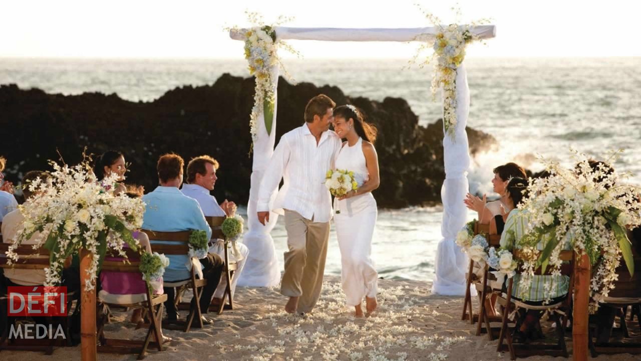 Il n’y aura pas que le cadre qui sera original. Entre le sable blanc et les cocotiers, les futurs mariés délaisseront les traditionnels robe blanche et costard… Ils échangeront leurs voeux en tenue de plage.