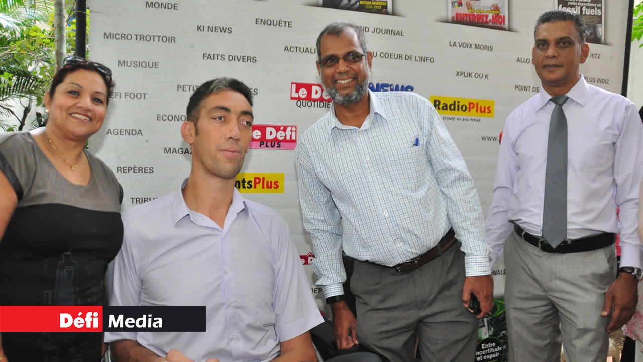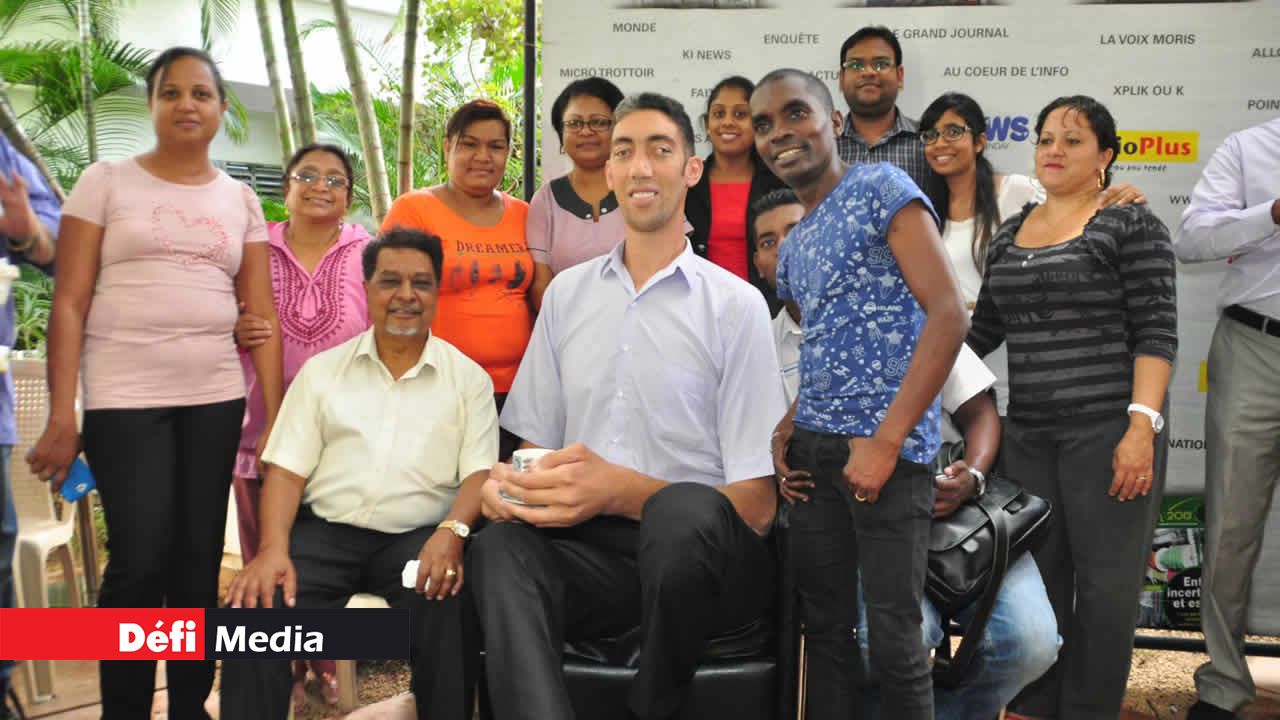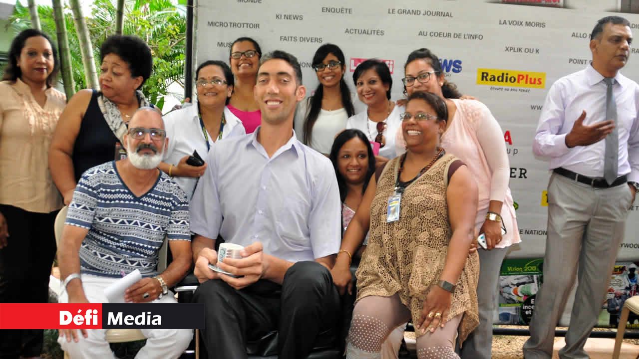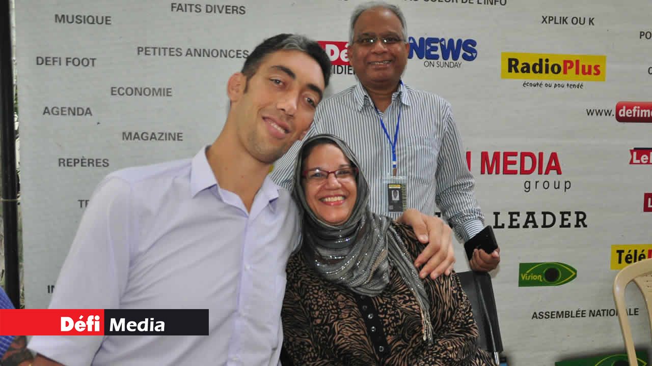 Un visiteur de marque dans les locaux de Radio Plus jeudi matin 14 avril. Sultan Kösen, homme le plus grand de la planète, a visité la station de la rue Labourdonnais.