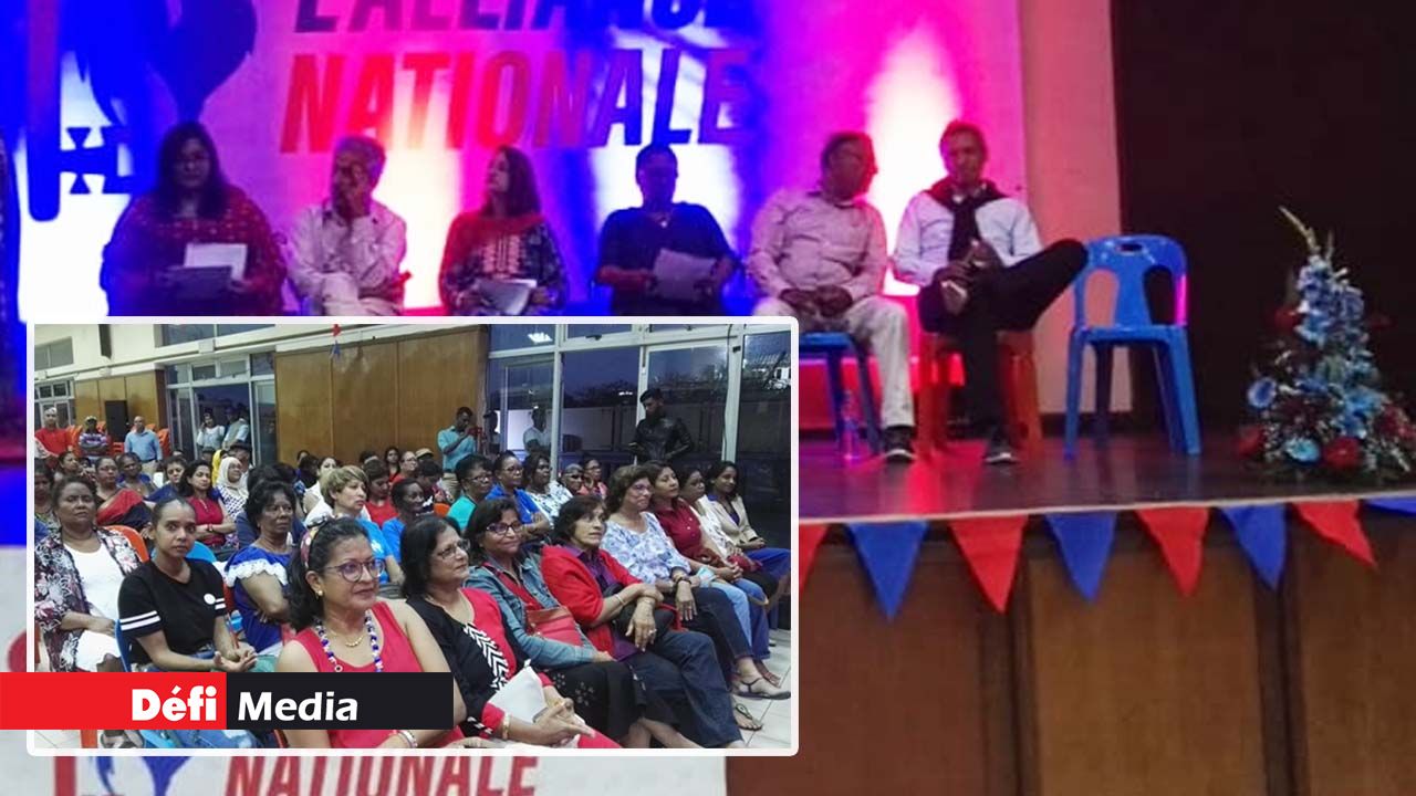 L'Alliance Nationale (PTr-PMSD-Mouvement Jean-Claude Barbier) a tenu un congrès de son aile féminine, mercredi 23 octobre, au Reception Hall à Belle-Rose. Les candidats de l’Alliance dans la circonscription no 18 (Belle-Rose/Quatre-Bornes) en ont profité pour annoncer «des mesures fortes pour les femmes en cas de victoire».