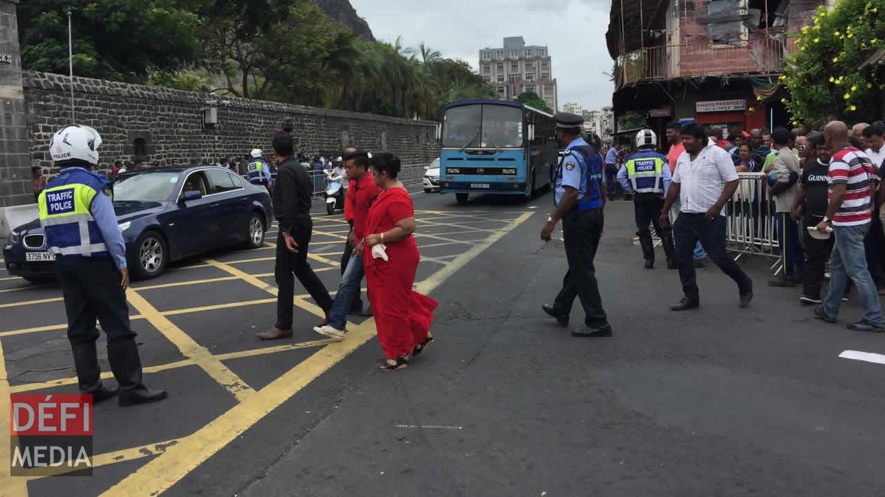 Le calme est revenu aux alentours de midi. Selon nos recoupements, quelques personnes ont été interpellées par la police pour « obstruction ». Un sympathisant rouge pourrait même se retrouver en état d’arrestation. A 12 h 30, des partisans du PTr de même que des membres de l’état-major rouge, notamment Patrick Assirdaven, Anil Bachoo, Osman Mahomed et Rajesh Jeetah, étaient toujours mobilisés à l’extérieur des Casernes centrales.