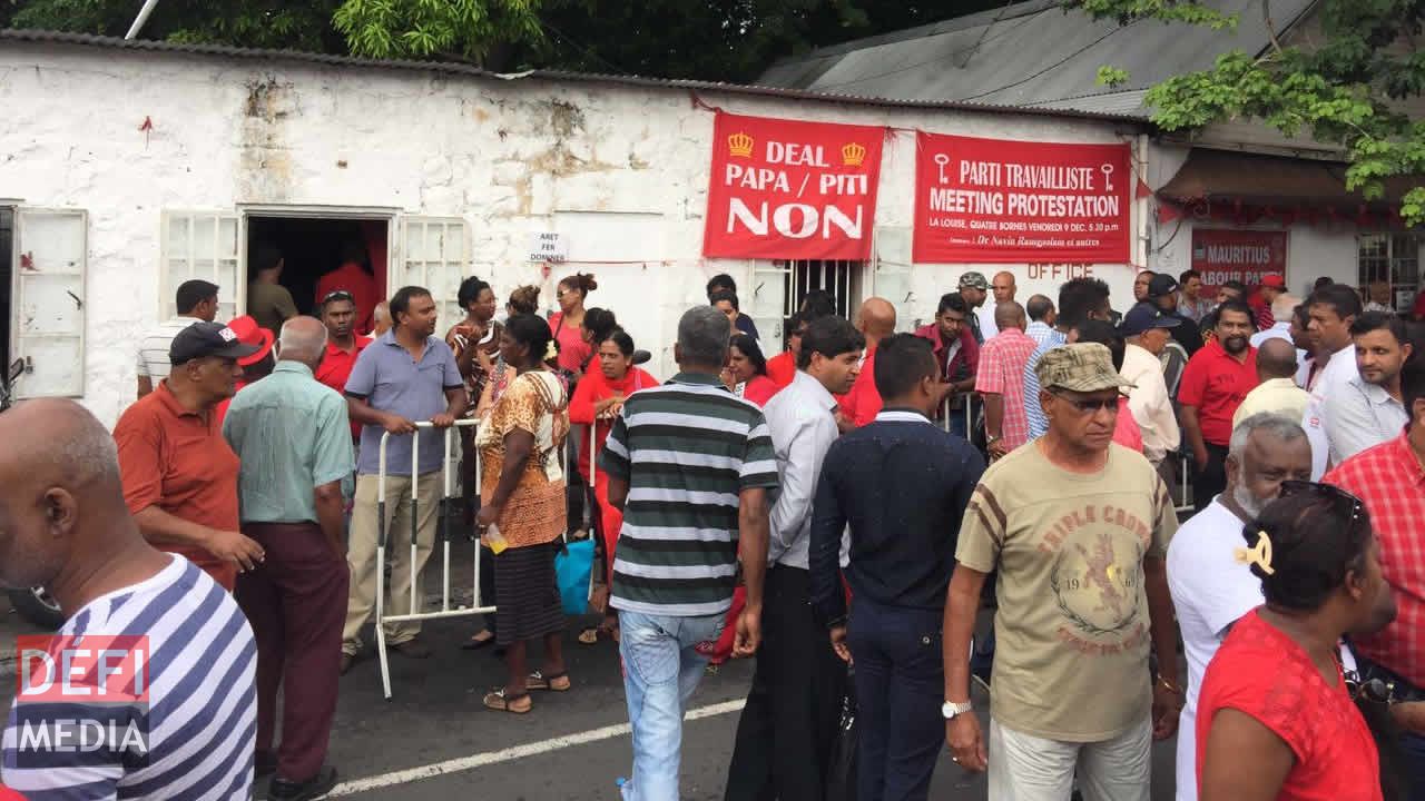 Ces sympathisants rouges se sont regroupés devant le quartier général (QG) du PTr, au Square Guy Rozemont, pour exprimer leur soutien à leur leader Navin Ramgoolam. Ce dernier a été convoqué au Central Criminal Investigation Department (CCID) dans le cadre de l’enquête policière sur l’affaire des coffres-forts contenant Rs 220 millions saisis à son domicile à Riverwalk en février 2015.