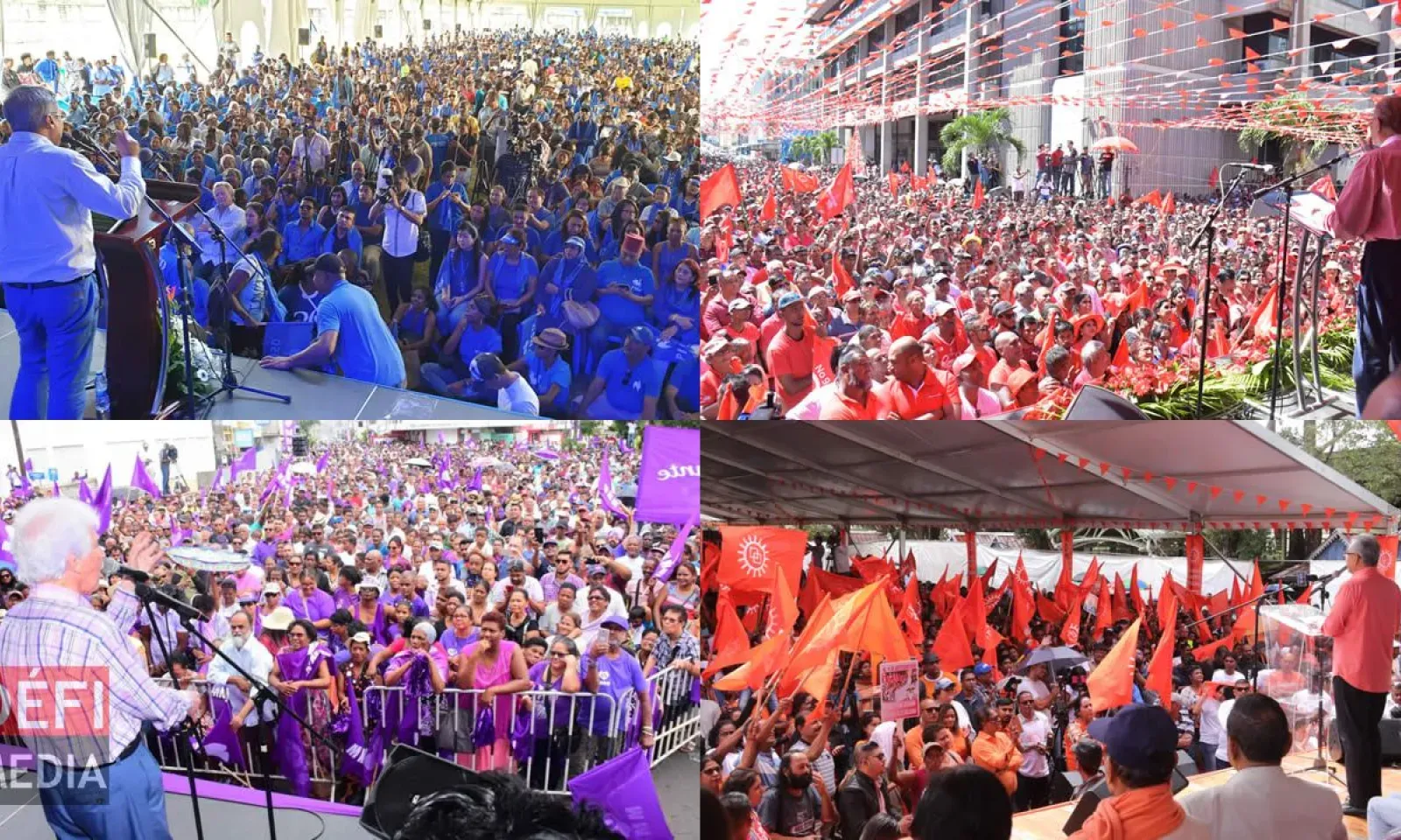 Ruth Rajaysur et Patrick Hilbert accueillent sur le plateau, Dany Marie de Rezistans ek Alternativ (ReA), Vince Rungasamy de la Confédération des Travailleurs des Secteurs Public et Privé (CTSP) et Nazneen Suffee de Linion Pep Morisien (LPM).