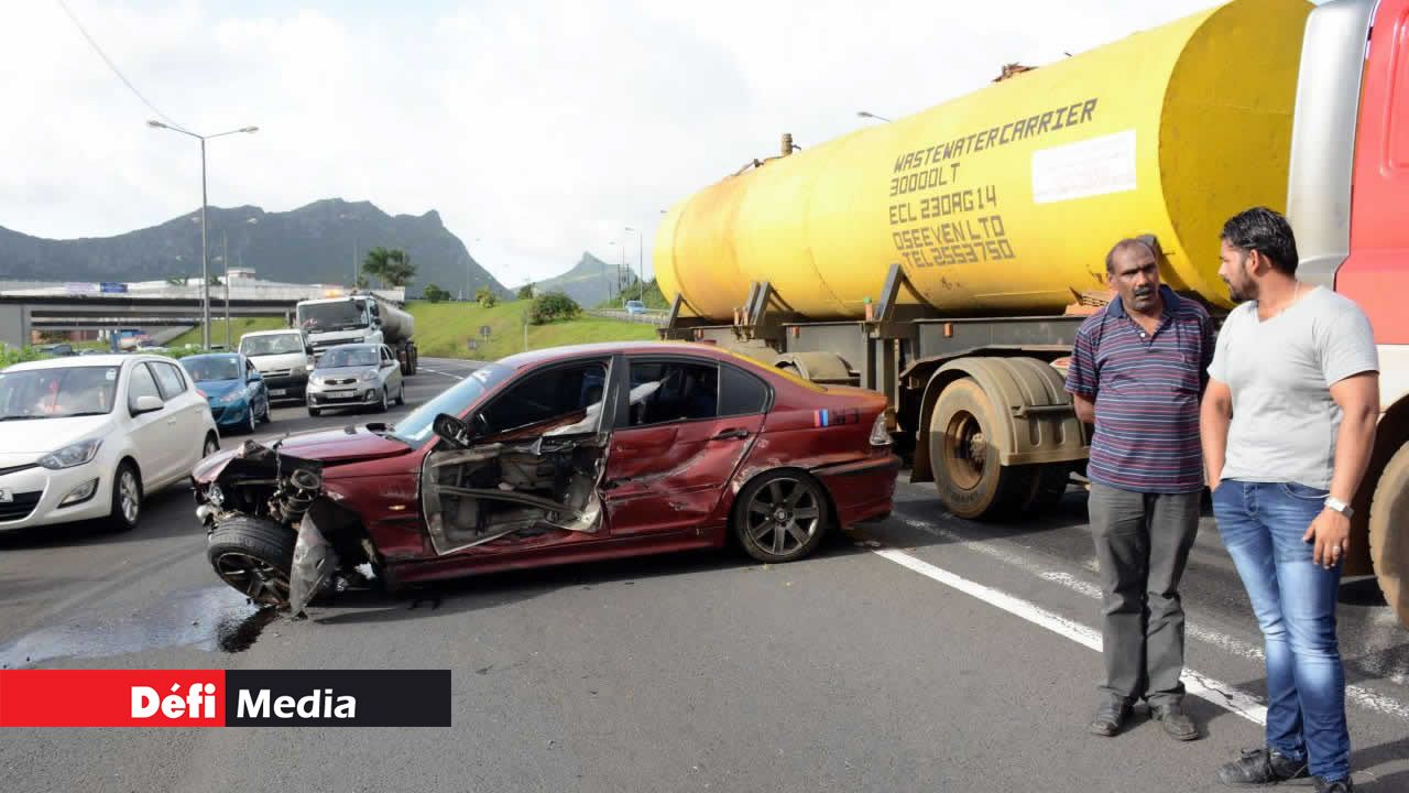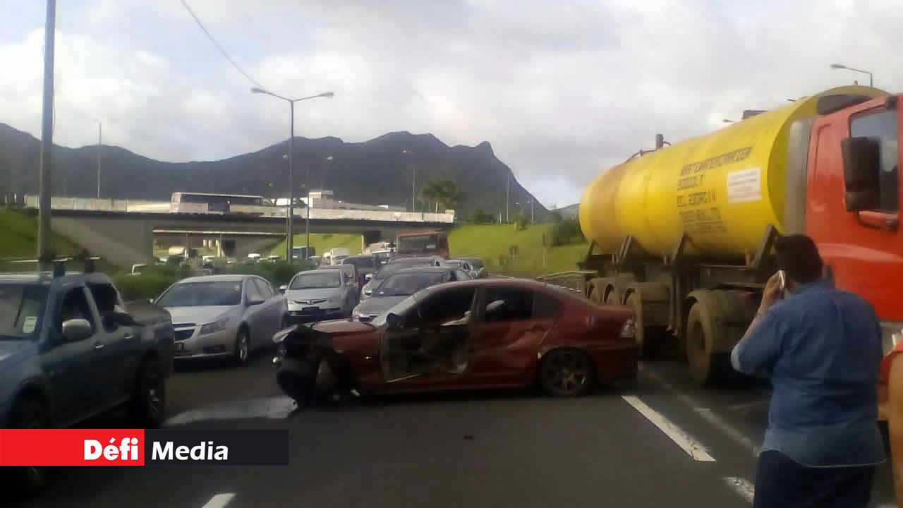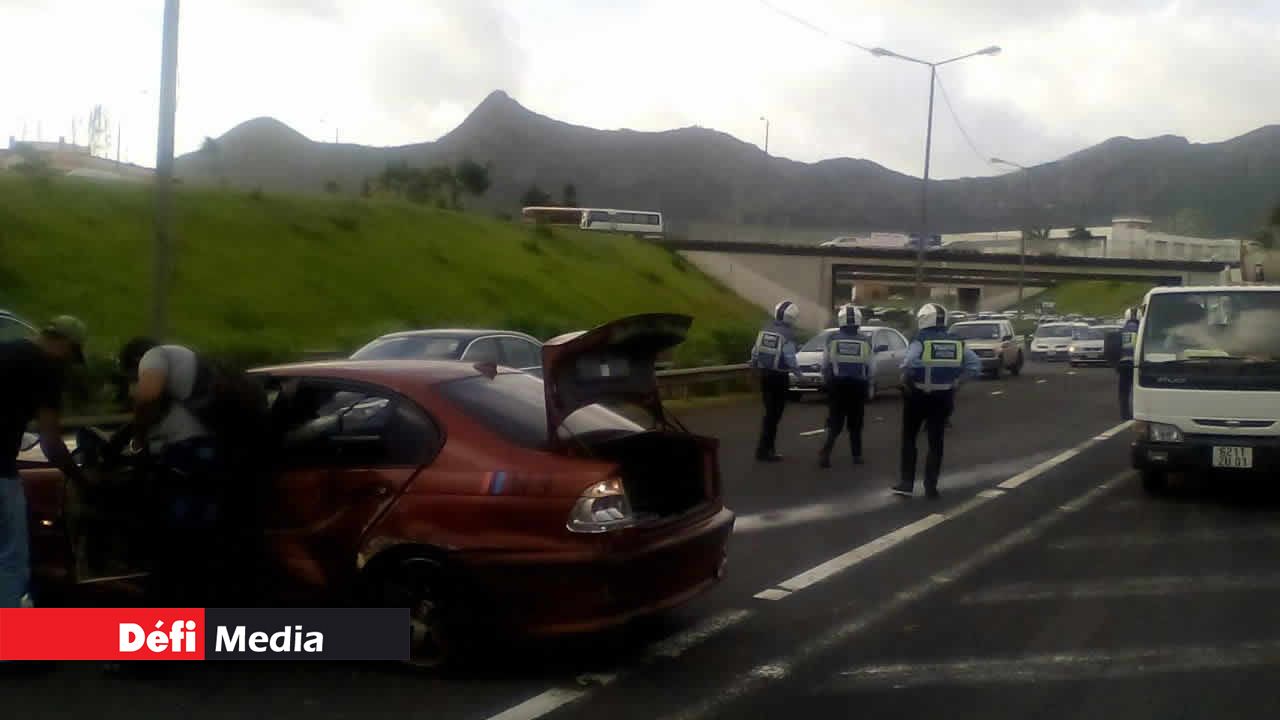 Accident spectaculaire samedi après-midi 16 avril sur l’autoroute M1 à la hauteur de l’échangeur de Réduit en direction du sud.