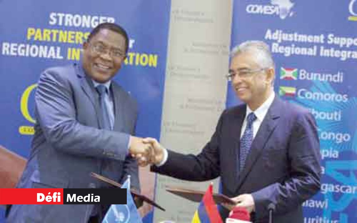 On Monday, the Finance Minister Pravind Jugnauth signed the 3rd Addendum to the Grant Agreement under the COMESA Adjustment Facility. On this occasion, the Minister reminded that, as a member State of the COMESA Fund, Mauritius has since 2012 received a total of € 3.6 million (approx. Rs 143 million). He added that “funding from COMESA has also supported Mauritius to meet country-specified performance commitments and other trade related programmes on regional integration such as: Buyer-seller meetings in COMESA Member States; Consolidation of SMEs to better conduct business in the COMESA market with re-branding of products with business and fairs; Trade missions and Enhancement of Single Window Portal.”