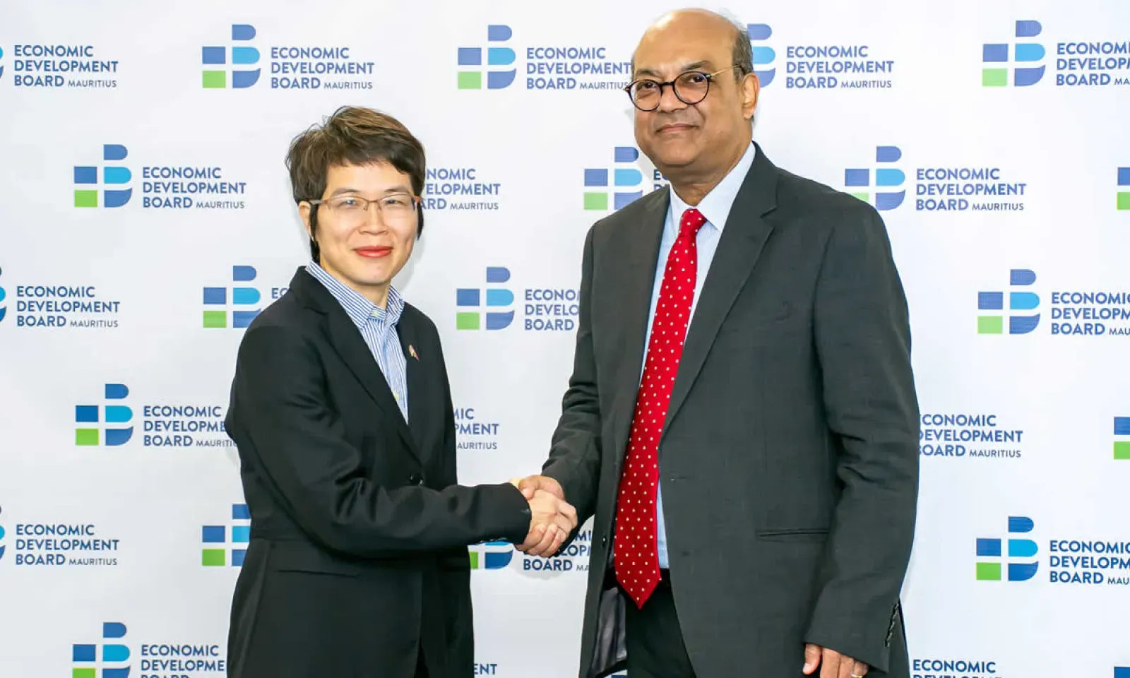 L’Economic Development Board (EDB) a accueilli la Dr Huang Shifang, ambassadrice extraordinaire et plénipotentiaire de la République populaire de Chine à Maurice. Accompagnée de Wang Lei, conseillère économique et commerciale, elle a été reçue par Mahen Kundasamy, CEO de l’EDB. Cette rencontre de haut niveau a été l’occasion de réaffirmer la solidité des relations diplomatiques entre Maurice et la Chine, tout en explorant de nouvelles opportunités de coopération stratégique, notamment dans le cadre de l’Accord de libre-échange Maurice–Chine et du Forum sur la coopération sino-africaine (FOCAC).