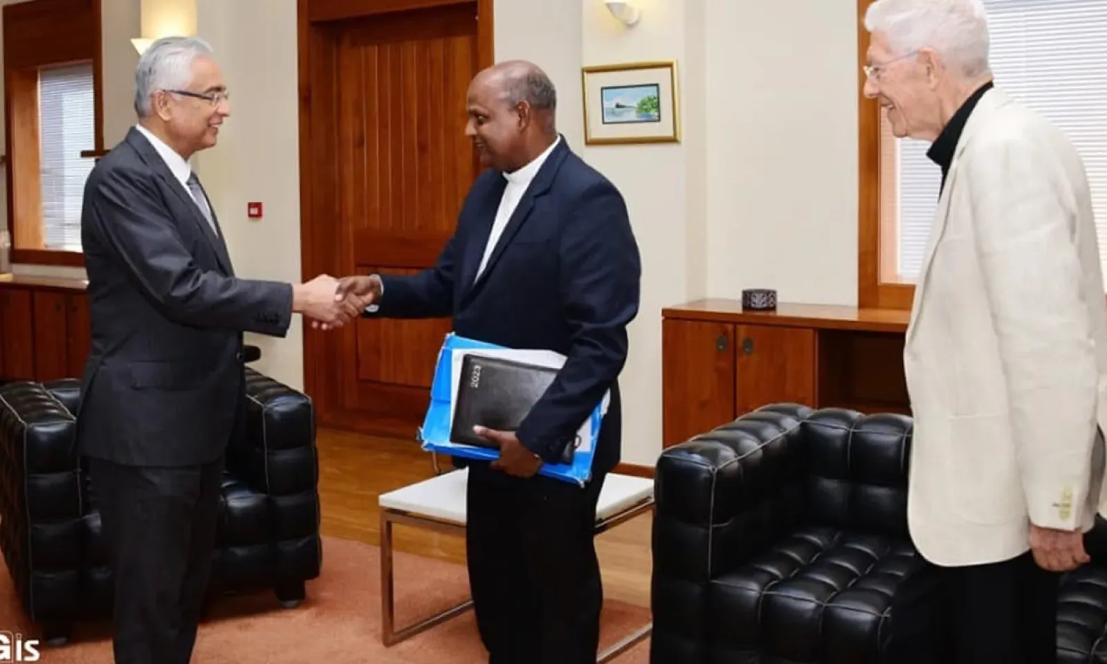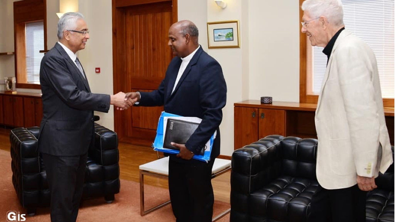 Le nouvel évêque du diocèse de Port-Louis, le père Jean-Michaël Durhône, accompagné du cardinal Maurice E. Piat, a rendu visite de Premier ministre, Pravind Kumar Jugnauth, au Bâtiment du Trésor à Port-Louis, ce lundi 29 mai.