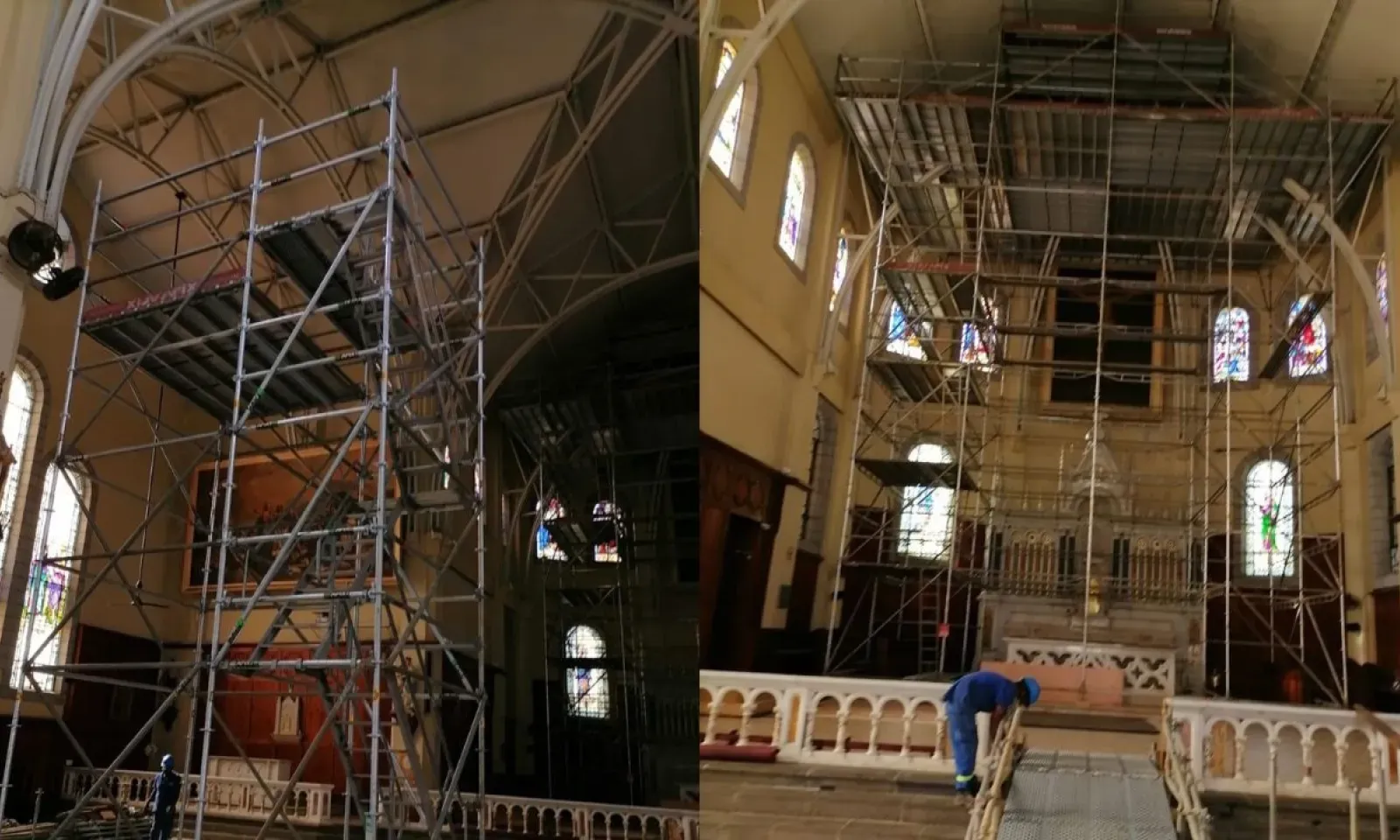 Dans un communiqué émis ce vendredi, 30 juin, Le père Jean Maurice Labour, administrateur de la Cathédrale a précisé que l’entreprise choisie pour les échafaudages a livré le chantier le jeudi 29 juin 2023 et qu’à partir du 30 juin, les travaux de réparation du fond plafond endommagé, gouttières, toit, électrique et de peinture vont débuter.