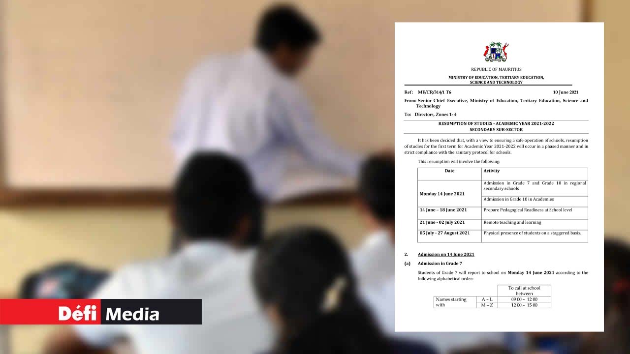La reprise des études au secondaire se fera de manière progressive, ce en respectant le protocole sanitaire. L’exercice d’admission aura lieu le 14 juin prochain. Après cette étape, il y aura une préparation pédagogique au niveau de l’école du 14 juin au 18 juin, suivie de l’enseignement à distance du 21 juin au 2 juillet.