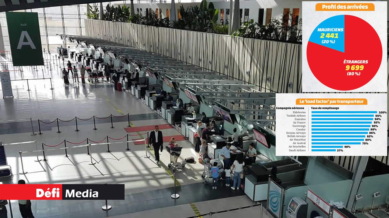 Quel est le bilan chiffré au terme des sept premiers jours d’octobre, mois synonyme de réouverture de nos frontières aux touristes ? Voici les chiffres à retenir, selon l’analyse d’Airport Terminal Operations Ltd : 12 compagnies aériennes, 35 vols et 12 140 arrivées (étrangers et Mauriciens). Ainsi, on pourrait s’attendre à 40 000 arrivées ou plus, selon la Mauritius Tourism Promotion Authority.