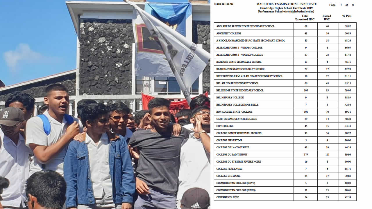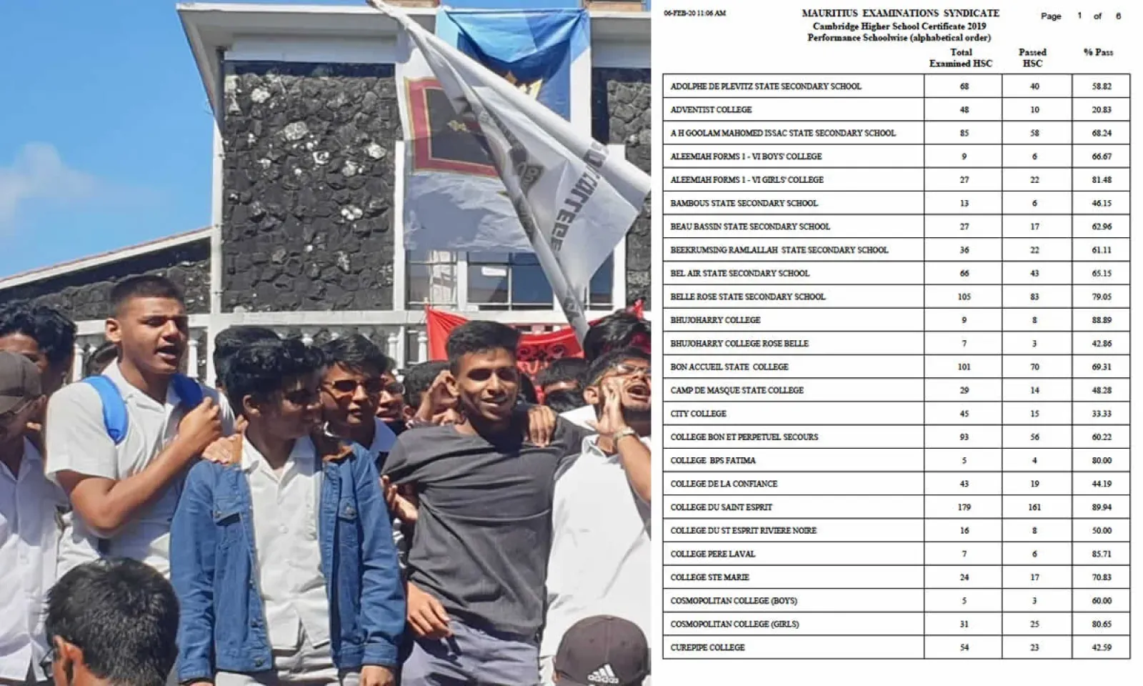 Au total, 17 collèges, ont obtenu un taux de réussite variant entre 89 et 80 pourcent, parmi le Bhujoharry College et John Kennedy College.