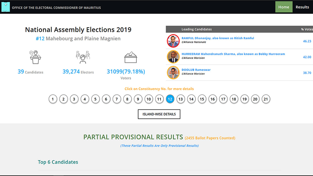 Ritish Ramful de l’Alliance Nationale est en tête dans la circonscription no 12 (Mahébourg/Plaine-Magnien), après le premier pointage, ce vendredi après-midi, 8 novembre.