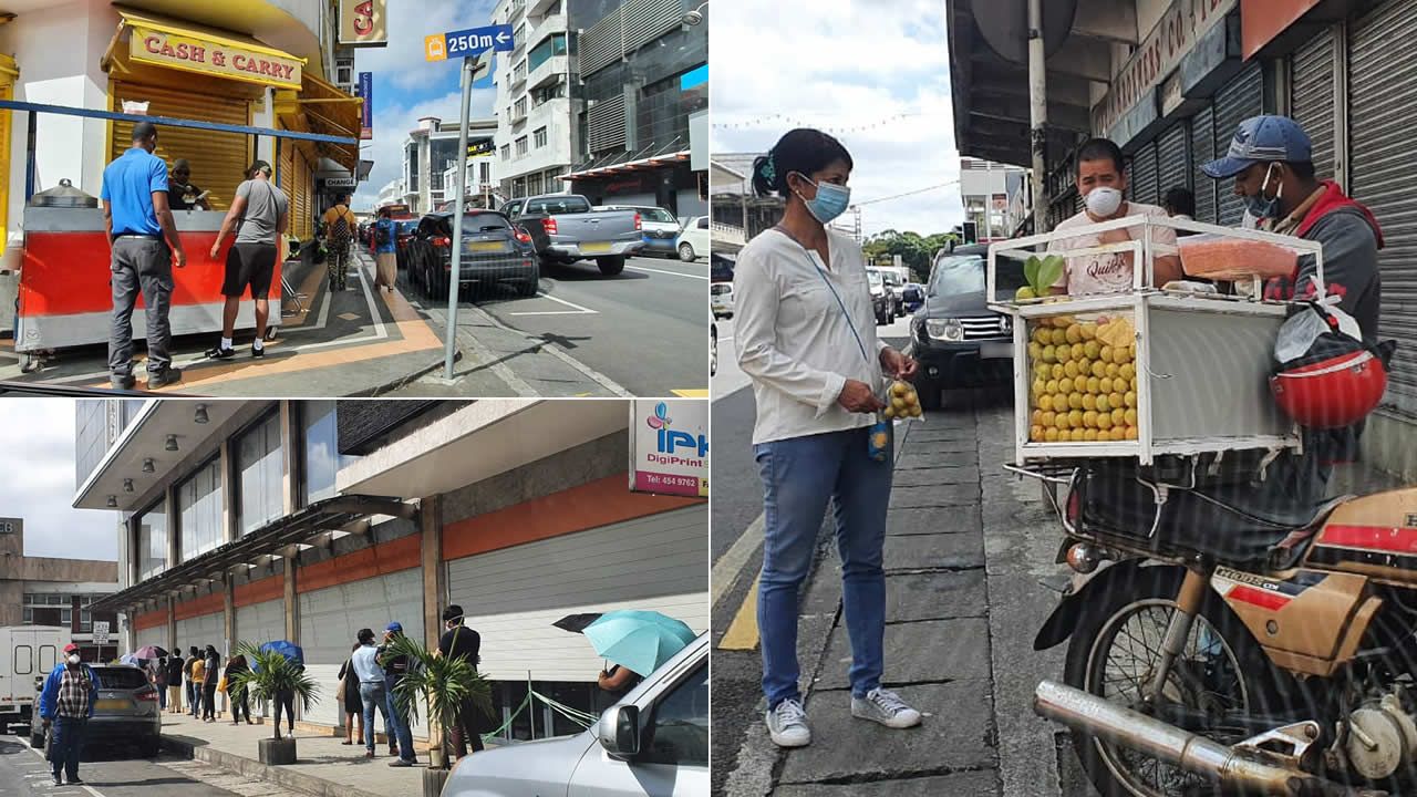 Bien que les magasins et la majorité des commerces soient toujours fermés, les marchands de fruits, de boulettes recommencent eux faire leur apparition dans les artères principales de Rose-Hill.