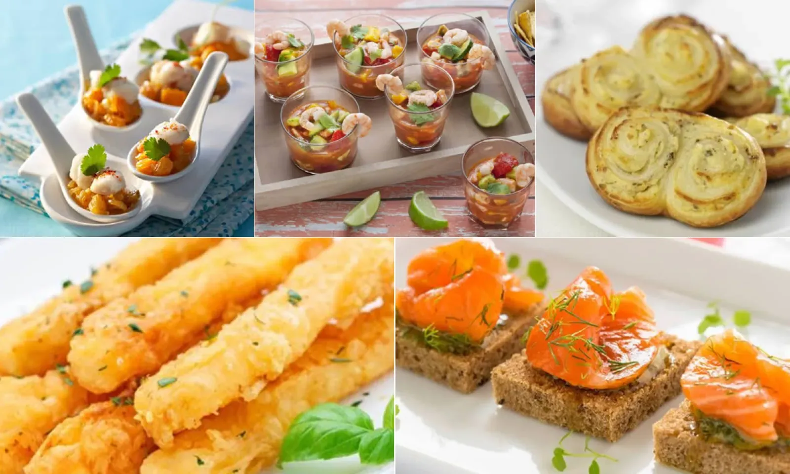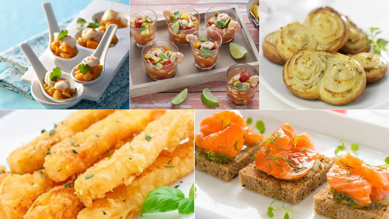 Des bouchées, des cuillères, des verrines, des toasts au saumon, au foie gras, aux Saint-Jacques… On a sélectionné pour vous cinq recettes pour un apéritif gourmet et gourmand. Vous pouvez aussi vous servir de ces recettes pour réaliser un apéro dînatoire en version étoilé.