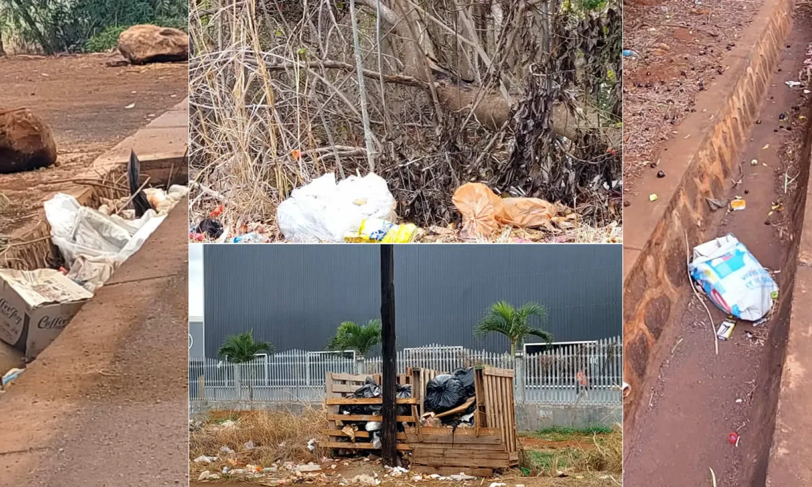 Sur le terrain, les images suffisent à illustrer l’ampleur du problème : sacs noirs gonflés de détritus entassés derrière des palettes, plastiques et cartons mêlés à une végétation desséchée, bouteilles en plastique et boîtes jetées dans les fossés… Lorsqu’il pleut, l’eau ne peut plus s’écouler, piégée par ces barrages de déchets.