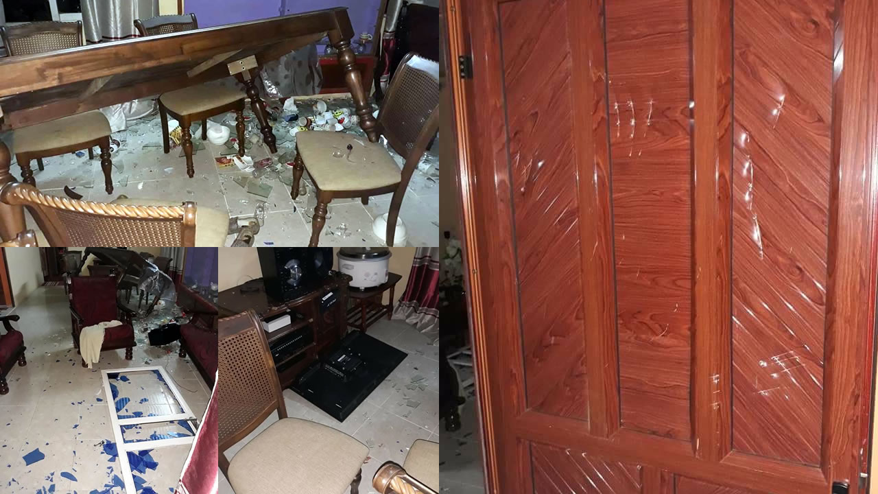 Des bruits et des aboiements des chiens ont attiré l’attention de Sookraz Moolah dimanche, quand la bande a fait irruption chez lui. Il est sorti de sa chambre pour s’enquérir de la situation et il est tombé sur huit hommes encagoulés armés de sabre, de tuyaux et d’armes à feu qui se sont mis à saccager son domicile. Pris de panique, ce père de famille a demandé aux membres de la famille de se cacher dans sa chambre et de verrouiller la porte. Mais un de ses fils est allé se cacher dans une autre pièce. Parallèlement, la bande a saccagé tout ce qui se trouvait sur son passage. Ils ont tenté de forcer la porte de la chambre avec leurs armes, mais n’y sont pas parvenus.
