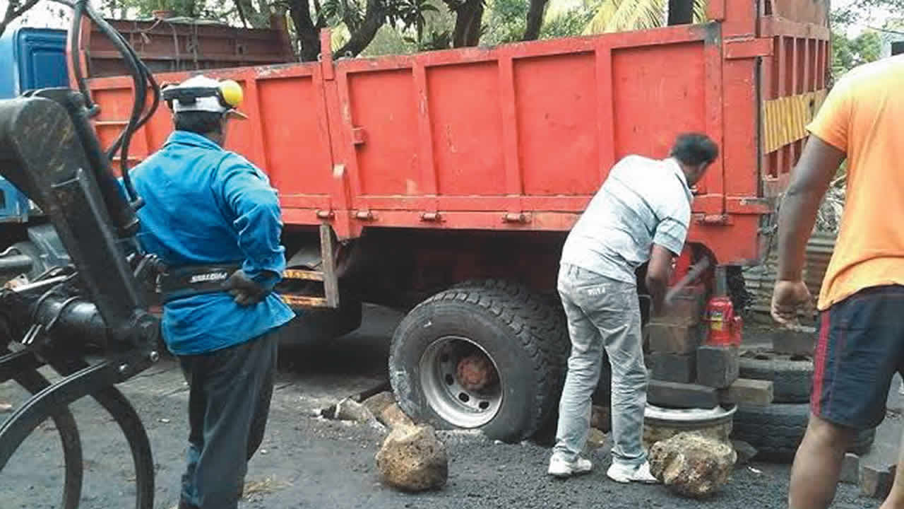 Ce mardi 4 octobre, à l’aube, la roue d’un camion y est restée coincée durant plus d’une demi-heure. Il aura fallu l’aide de volontaires pour sortir le camion de cette situation. Vishal Foolchand, le propriétaire du camion, dénonce le manque de réaction du conseil de district de Rivière-du-Rempart.