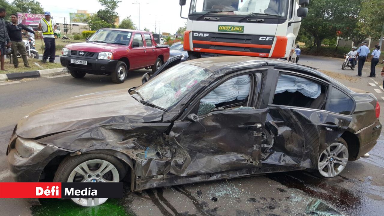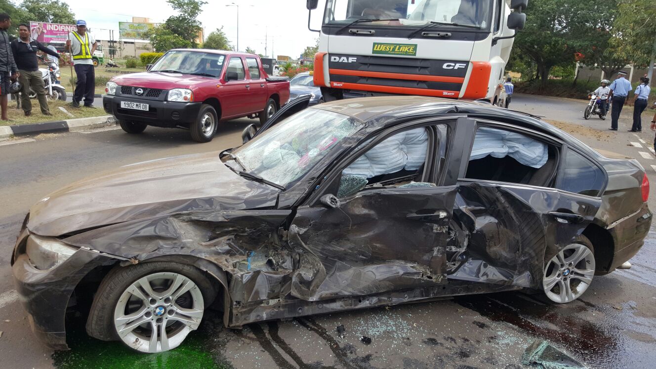 Accident de la route impliquant un poids-lourd et une BMW lundi matin 23 novembre sur l’autoroute à la hauteur du rond-point de Roches-Bois en direction de Port-Louis.