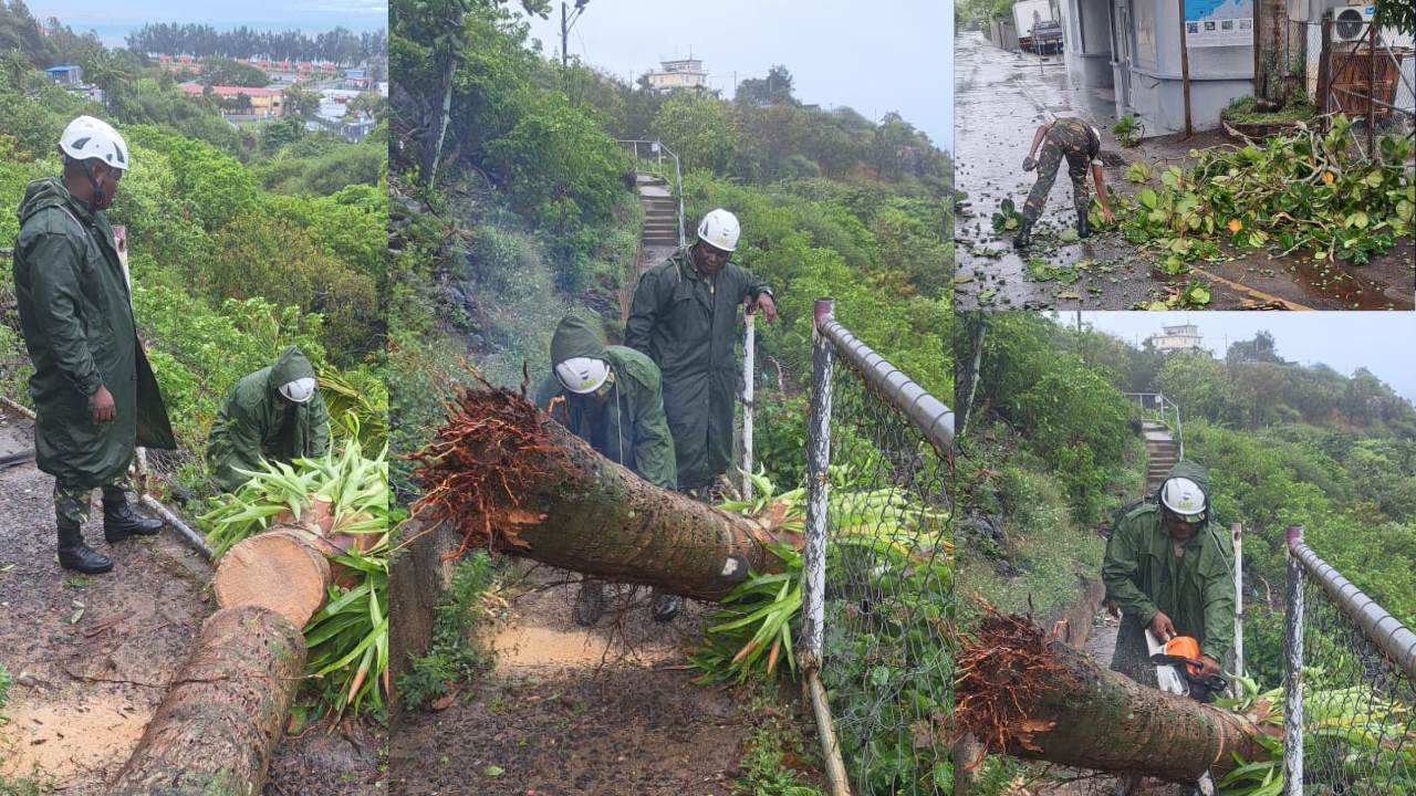 Le Rodrigues Emergency Operations Command est actuellement opérationnel au niveau le plus élevé, soit le niveau 3. Un avertissement de cyclone de classe 4 est en vigueur à Rodrigues. Des éléments de la Special Mobile Force (SMF) sont à pied d’œuvre pour assurer la sécurité des habitants. Ils élaguent des branches et des troncs d'arbres qui n'ont pas résisté sous les rafales de la tempête Bheki. Les plus fortes rafales ont été enregistrées à Patate Théophile (122 km/h).