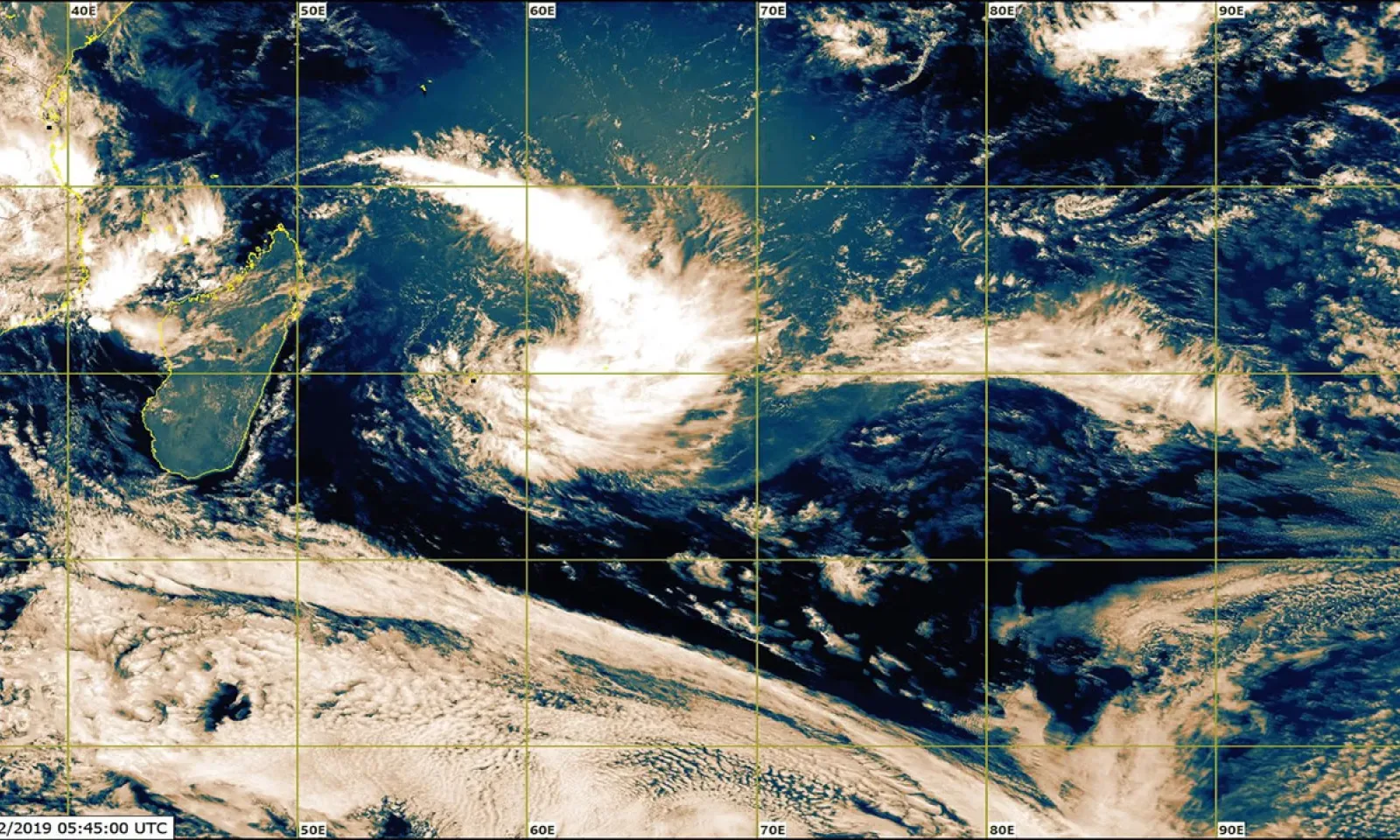 « A 10h00, la dépression tropicale était centrée à environ 350 km au nord-ouest de Rodrigues, soit en latitude 18.2 degrés sud et longitude 60.3 degrés est. Elle se déplace maintenant dans une direction générale du sud-sud-ouest à une vitesse accélérée de 20 km/h. Toutefois, un infléchissement de sa trajectoire vers le sud-est-est est encore probable ; ce qui rapprochera alors le centre de la dépression tropicale de l'île.