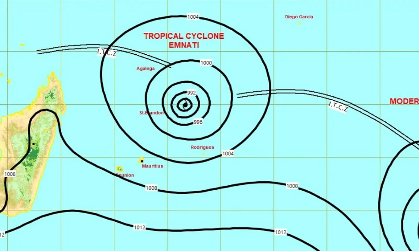 « A 10 h 00, le cyclone tropical Emnati était centré à environ 600 km au nord-ouest de Rodrigues en latitude 16,0 degrés sud et longitude 59,0 degrés est. Le cyclone tropical Emnati se déplace vers le sud-ouest à une vitesse d'environ 17 km/h », indique le service météo.