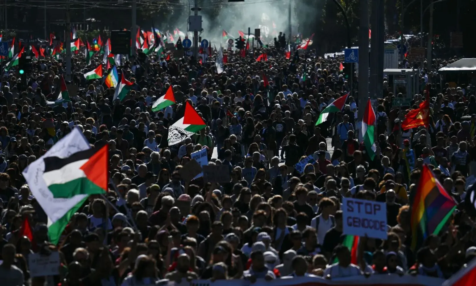 Drapeaux palestiniens, keffiehs et une foule qui crie "Free Palestine" : des centaines de milliers de personnes ont défilé samedi à Rome, Barcelone et Madrid pour réclamer la fin de la guerre à Gaza, mobilisation qui fait notamment suite à l'interception par Israël de la flottille internationale d'aide pour le territoire palestinien.