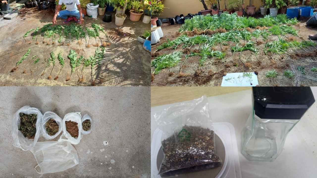 Une équipe de l’Anti-Drug and Smuggling Unit (ADSU) de Poudre-d’Or a investi son domicile aux petites heures du matin et y a découvert 103 plants de 5 cm à 2,8 mètres de haut, 269 grammes de gandia prêts à la vente ainsi que 7 093 semences.