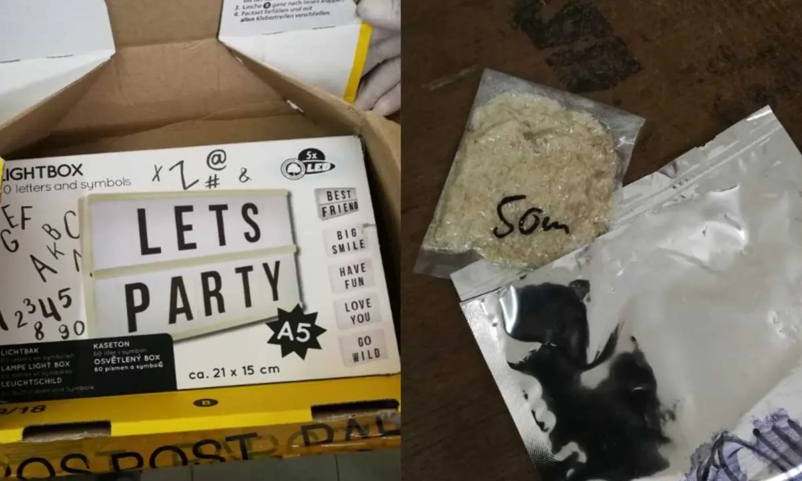 La drogue était dissimulée dans une boîte contenant une lampe LED de décoration.