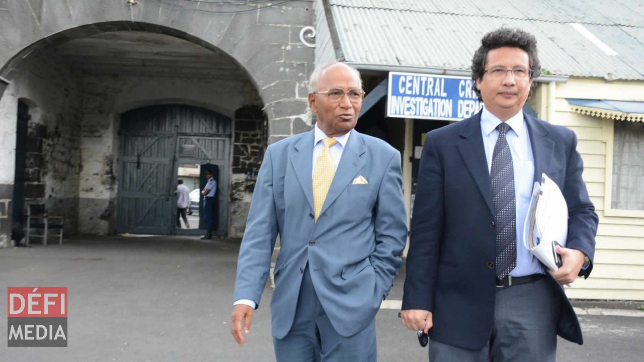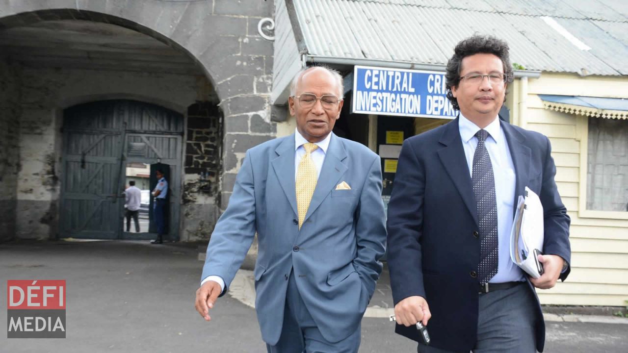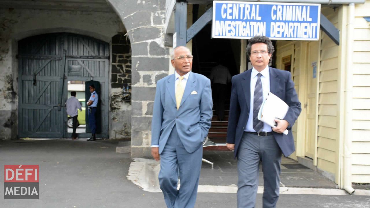 Rundheersing Bheenick et son avocat Me Hervé Duval Jr ont quitté les locaux du Central CID aux casernes centrales vers 12 h 45. <Publicité