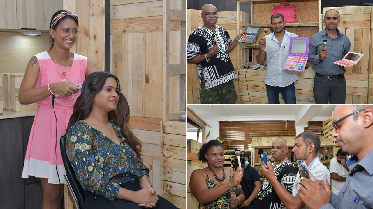 Pour les aider dans leur démarche, ils ont bénéficié, ce mardi, de cours de maquillage et de coiffure à la Chic and Posh Beauty Lounge Academy à Port-Louis. Les internautes ont pu suivre en direct, sur la page Facebook de Radio Plus, cette séance de formation, avec des démonstrations de maquillage par Pamela et de coiffure par Stéphanie, toutes deux des professionnelles de la Chic and Posh Beauty Lounge Academy, sur le modèle d’un jour : Revathi. Les trois époux ont suivi ces démonstrations avec attention en prenant des notes et ont même fait des vidéos.