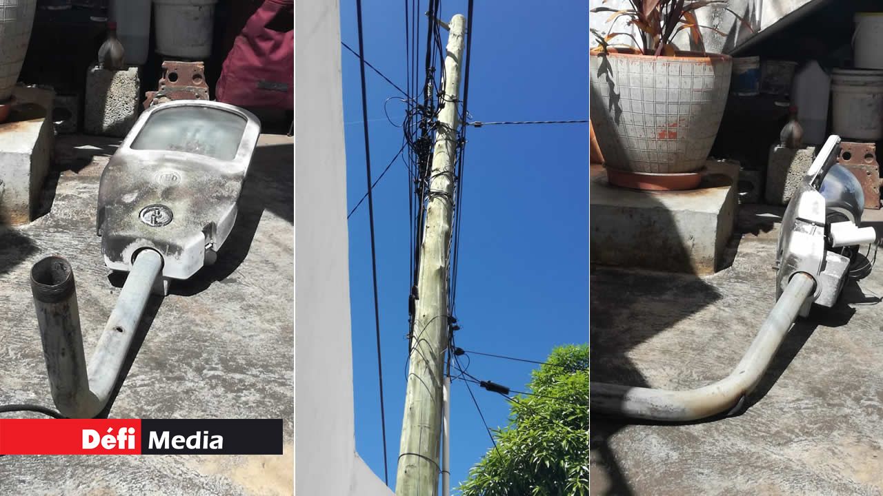 Par chance, le luminaire et son support se sont détachés quelques minutes plus tard, alors qu'il était entré à l’intérieur de sa maison. Le Central Electricity Board en a été alerté.