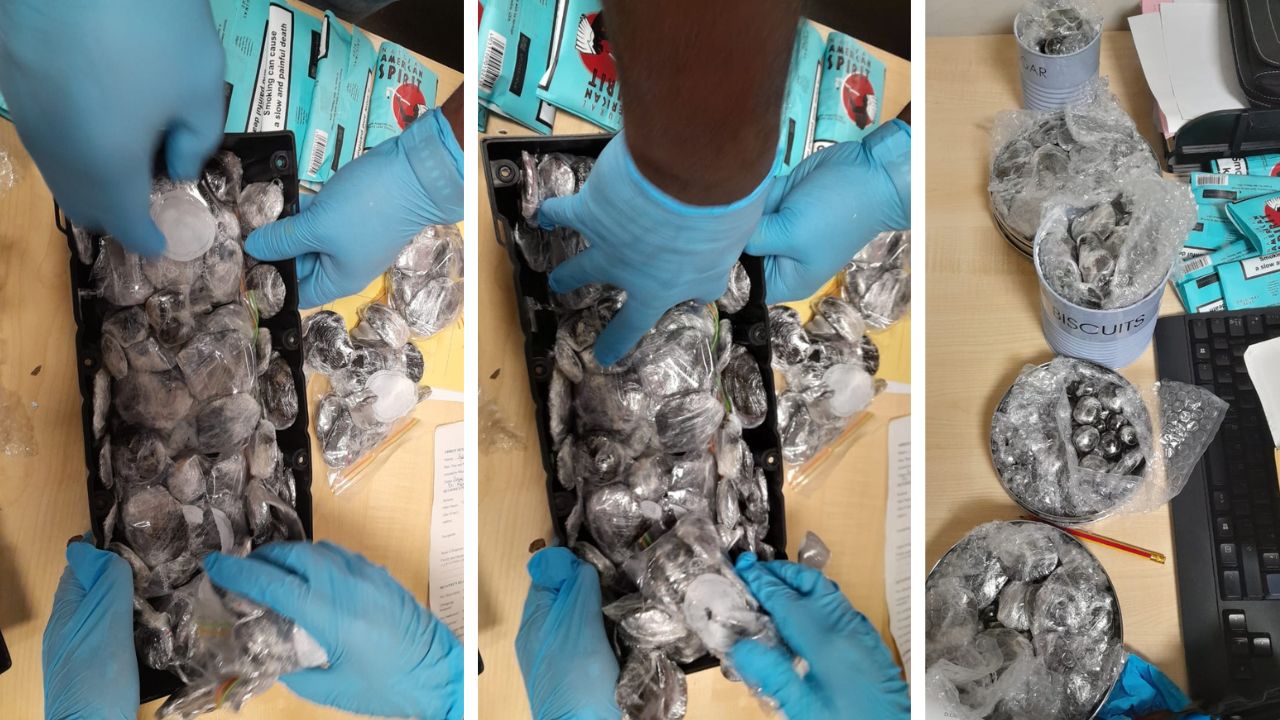 13,1 kilos d'haschisch et 11,400 papiers à tabac ont été découverts dans leurs bagages. La valeur de cette drogue et des papiers à fumer est estimée à Rs 40 millions. La drogue était dissimulée sous forme de plusieurs boulettes dans leurs valises.
